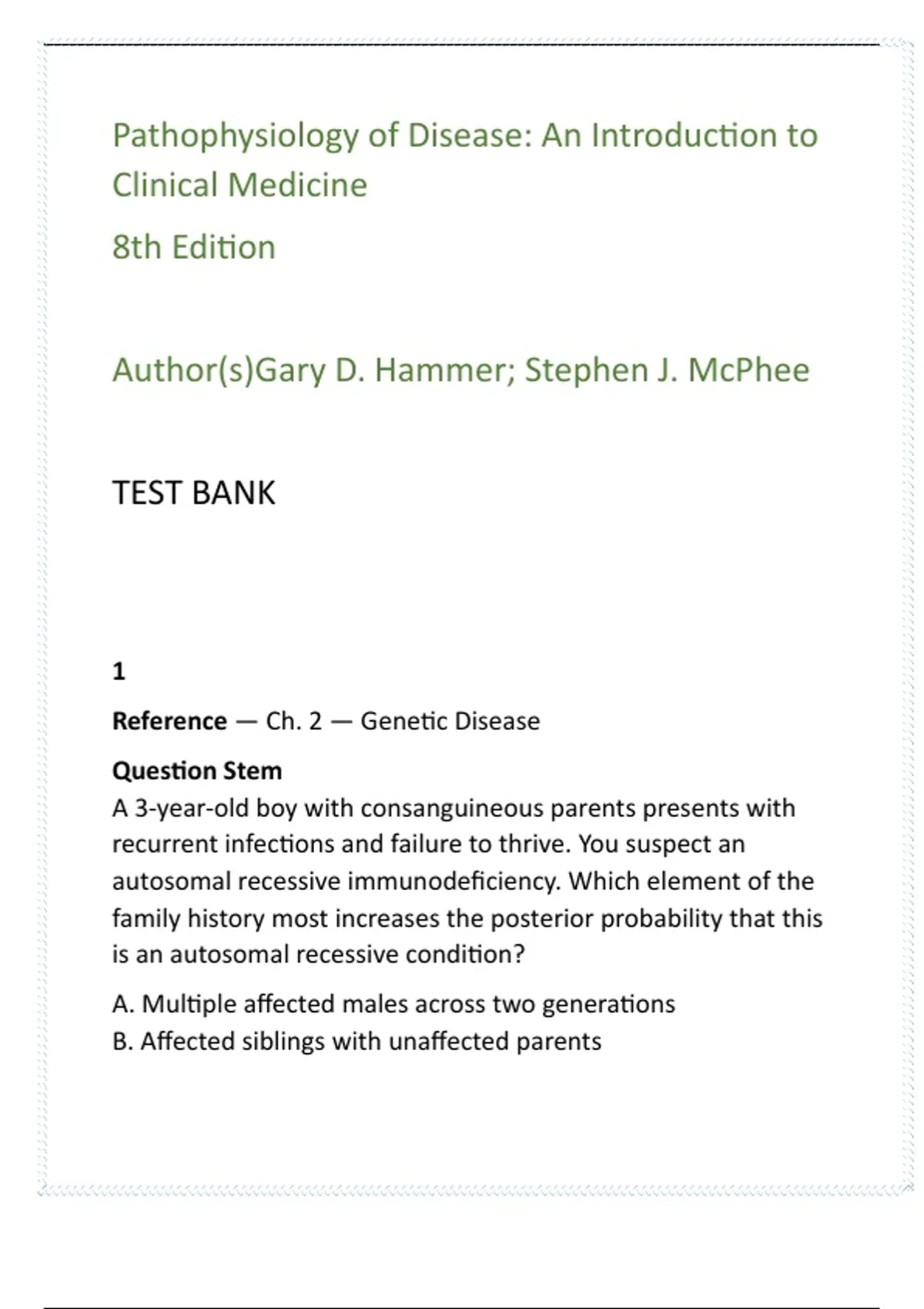 Reference — Ch. 2 — Genetic Disease