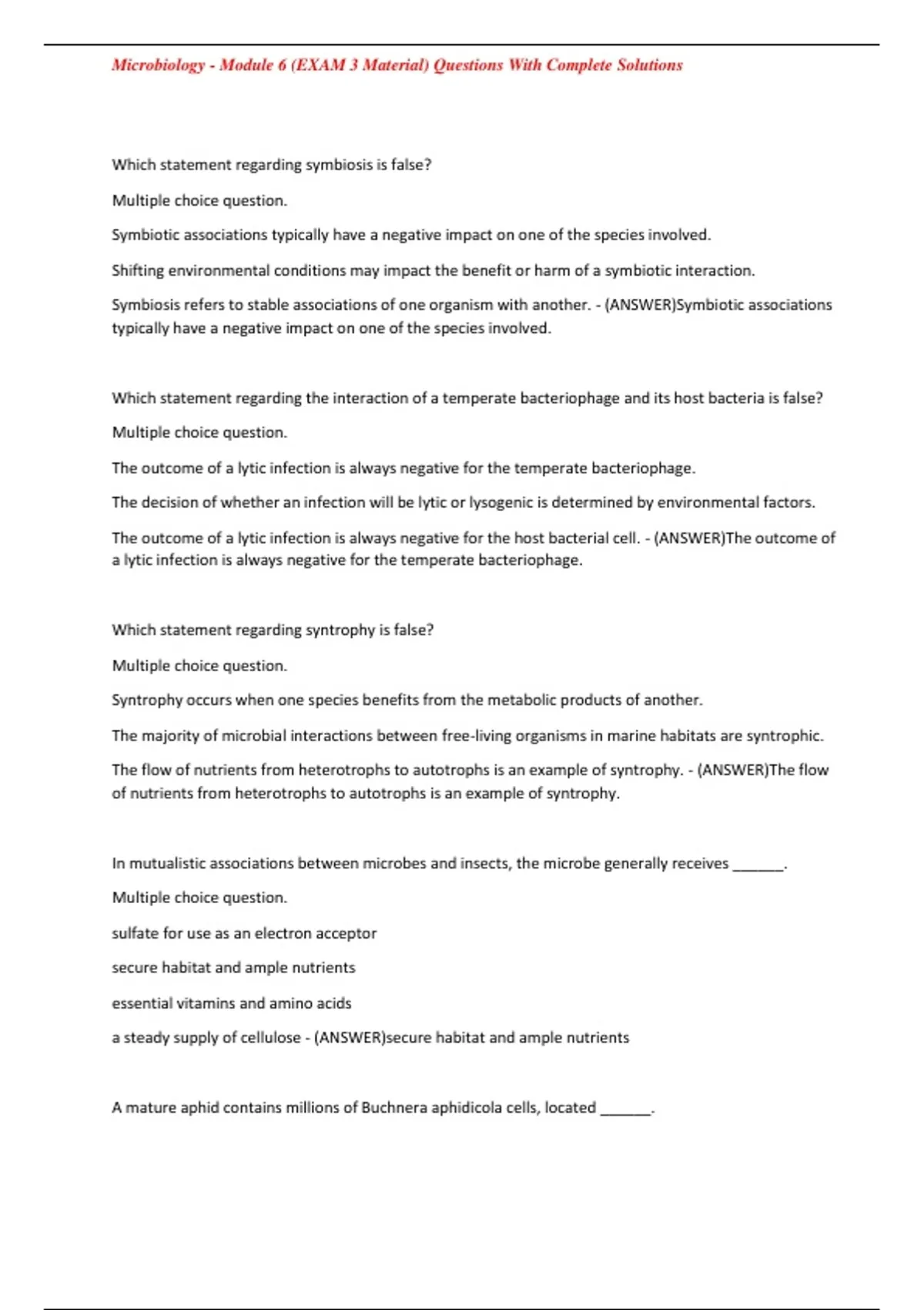 Microbiology - Module 6 (EXAM 3 Material) Questions With Complete Solutions
