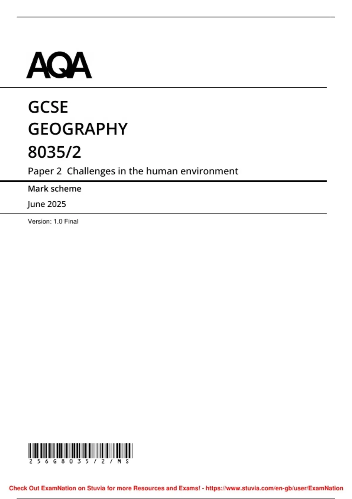 , MARK SCHEME – GCSE GEOGRAPHY – 8035/2 – JUNE 2025