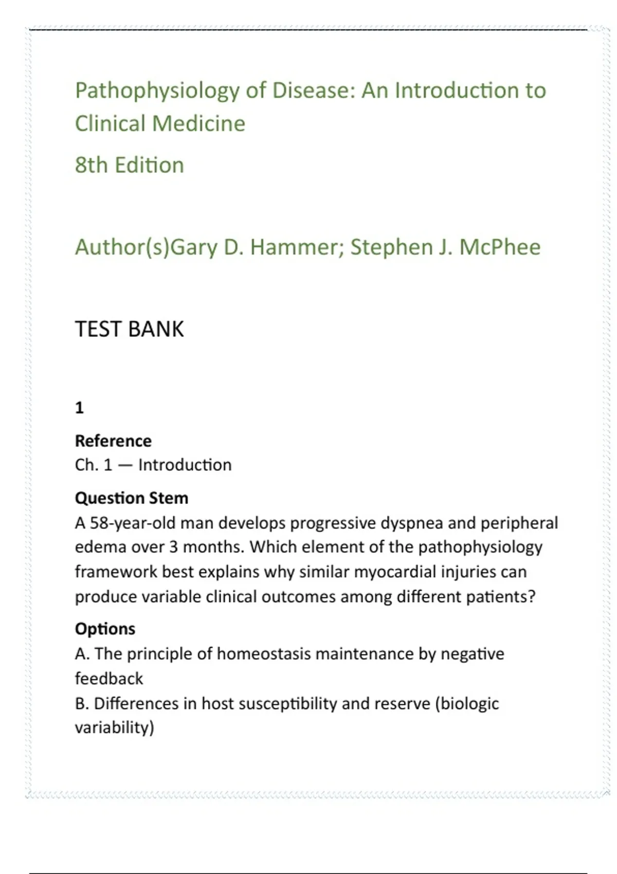 Hammer & McPhee (2019). Pathophysiology of Disease (8th