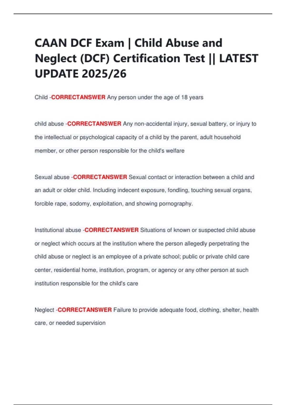 CAAN DCF Exam | Child Abuse and Neglect (DCF) Certification Test || LATEST UPDATE 2025/26