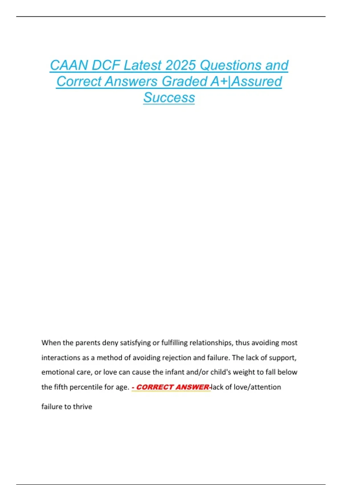CAAN DCF Latest 2025 Questions and Correct Answers Graded A+|Assured Success