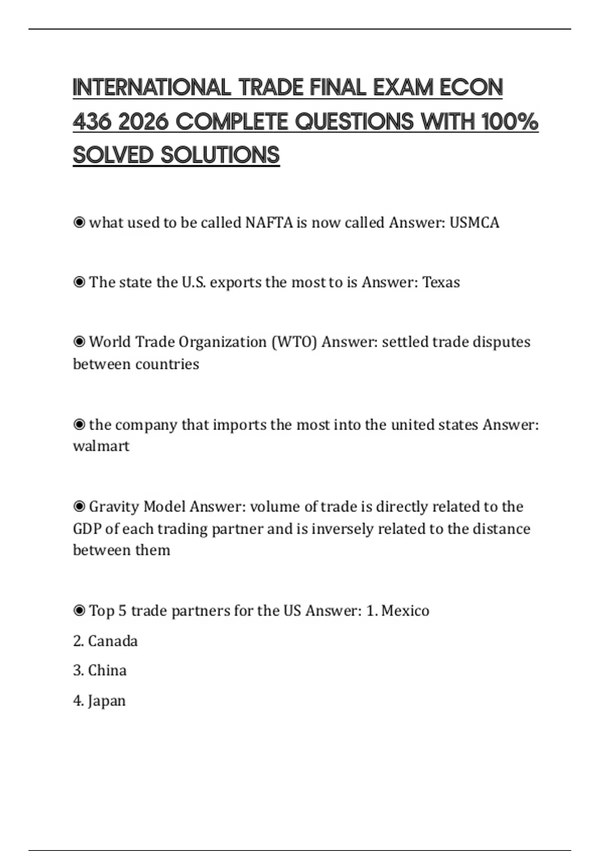 ◉ Top 5 trade partners for the US Answer: 1. Mexico