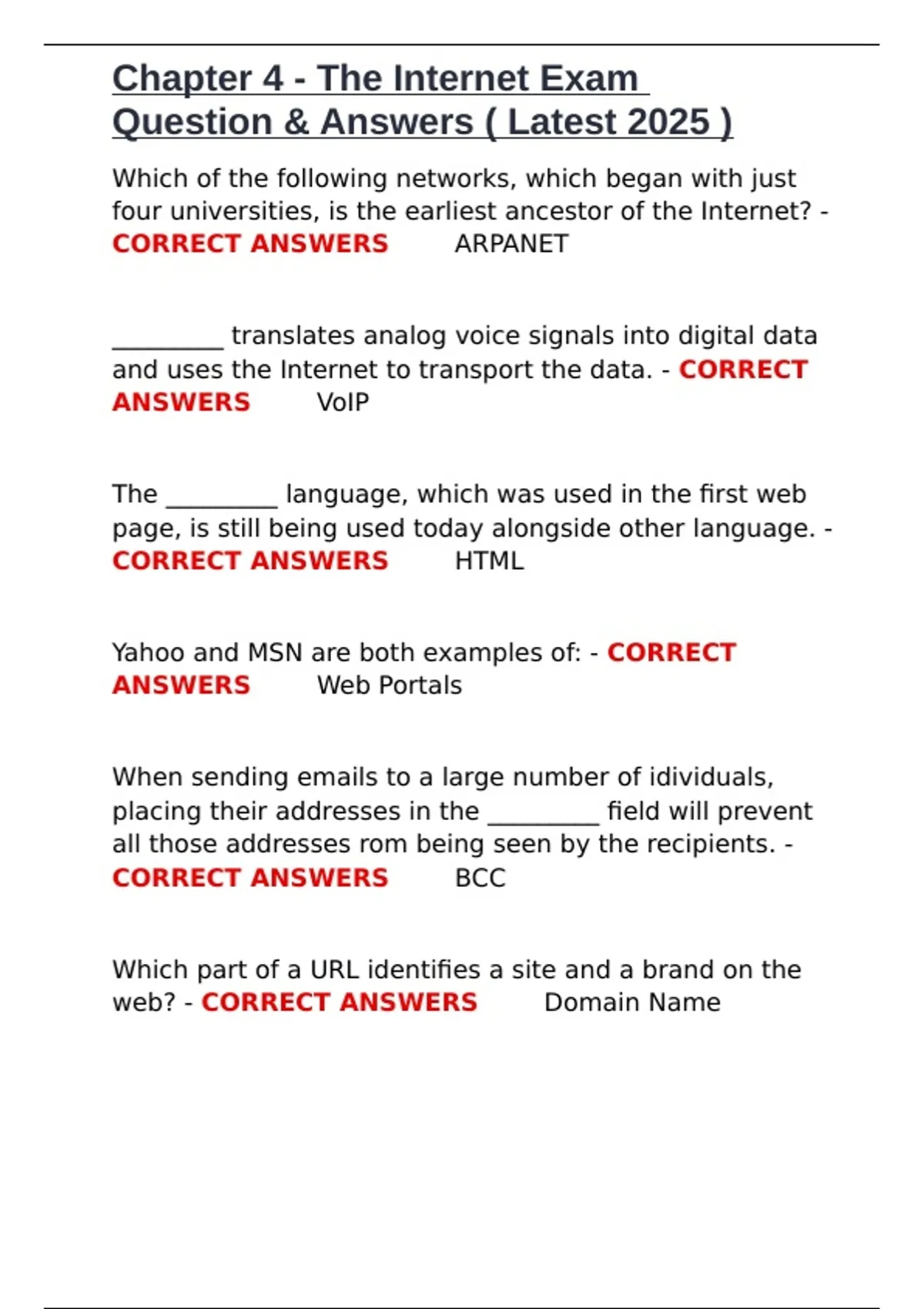 Chapter 4 - The Internet Exam Question & Answers ( Latest 2025 ).docx