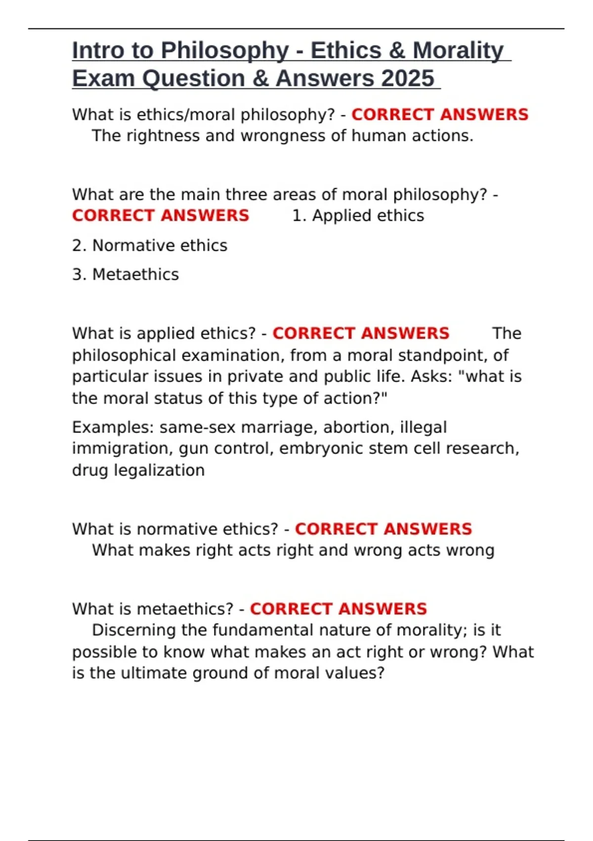 Intro to Philosophy - Ethics & Morality Exam Question & Answers 2025.docx