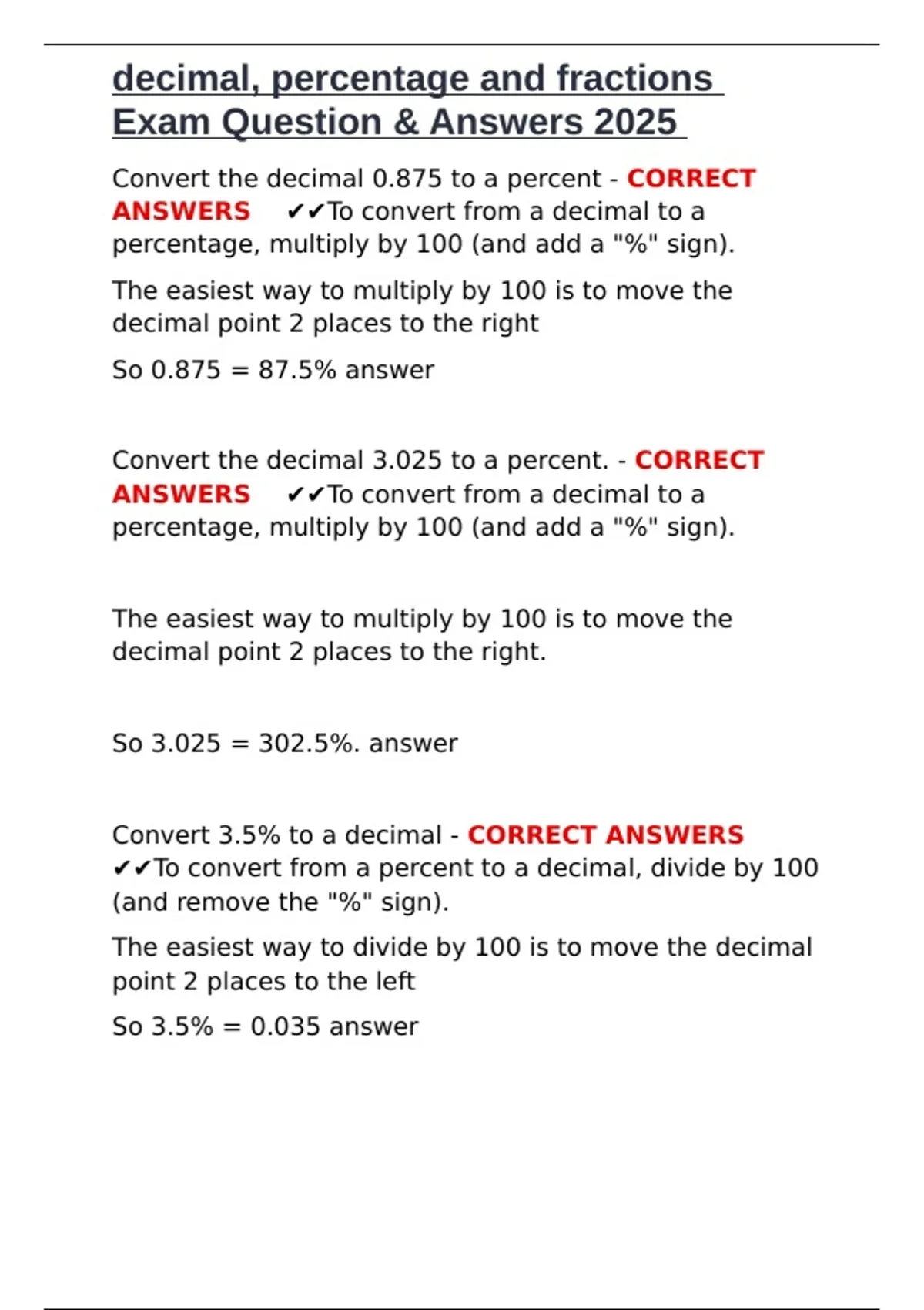 decimal, percentage and fractions Exam Question & Answers 2025.docx