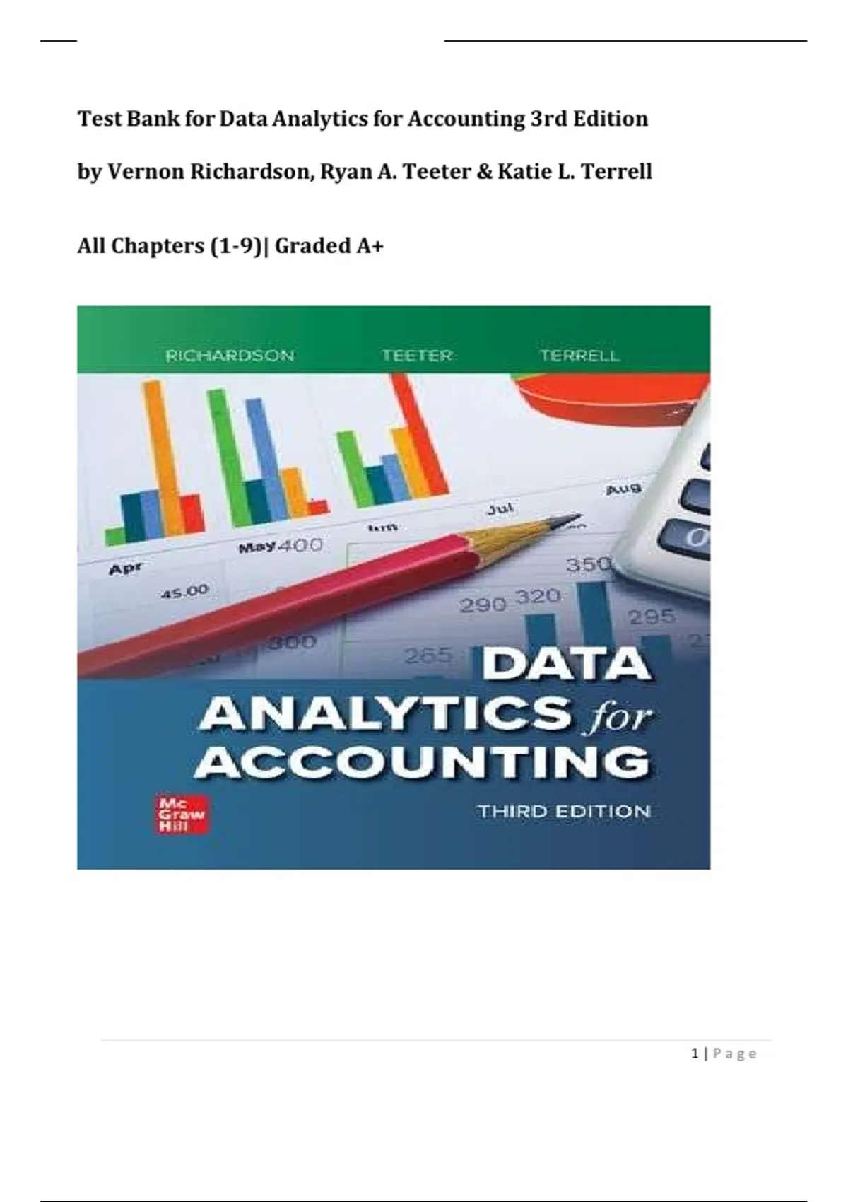 This document contains the complete test bank for Data Analytics for Accounting (3rd Edition) by Vernon Richardson, Ryan A. Teeter, and Katie L. Terrell, covering chapters 1 through 9. It features multiple-choice, true/false, and applied data analysis questions designed to assess understanding of accounting analytics concepts, tools, and real-world applications. Each question aligns with key topics in data-driven decision-making, ensuring effective preparation for exams and professional practice.