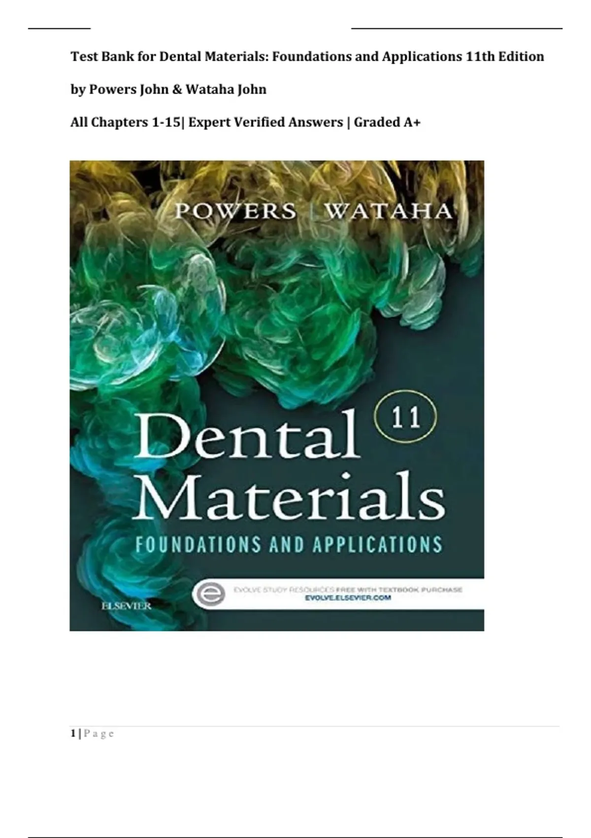 Test Bank for Dental Materials: Foundations and Applications 11th Edition