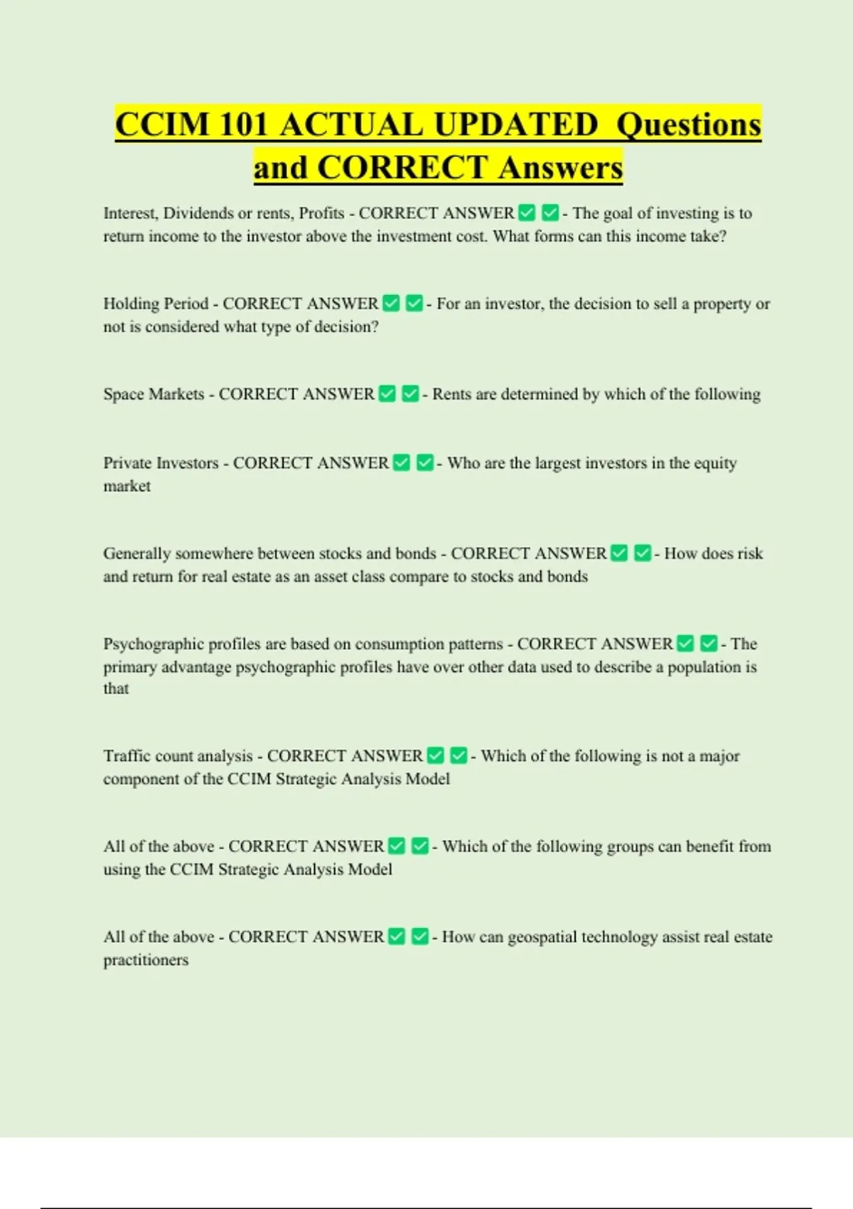 CCIM 101 ACTUAL UPDATED Questions and CORRECT Answers