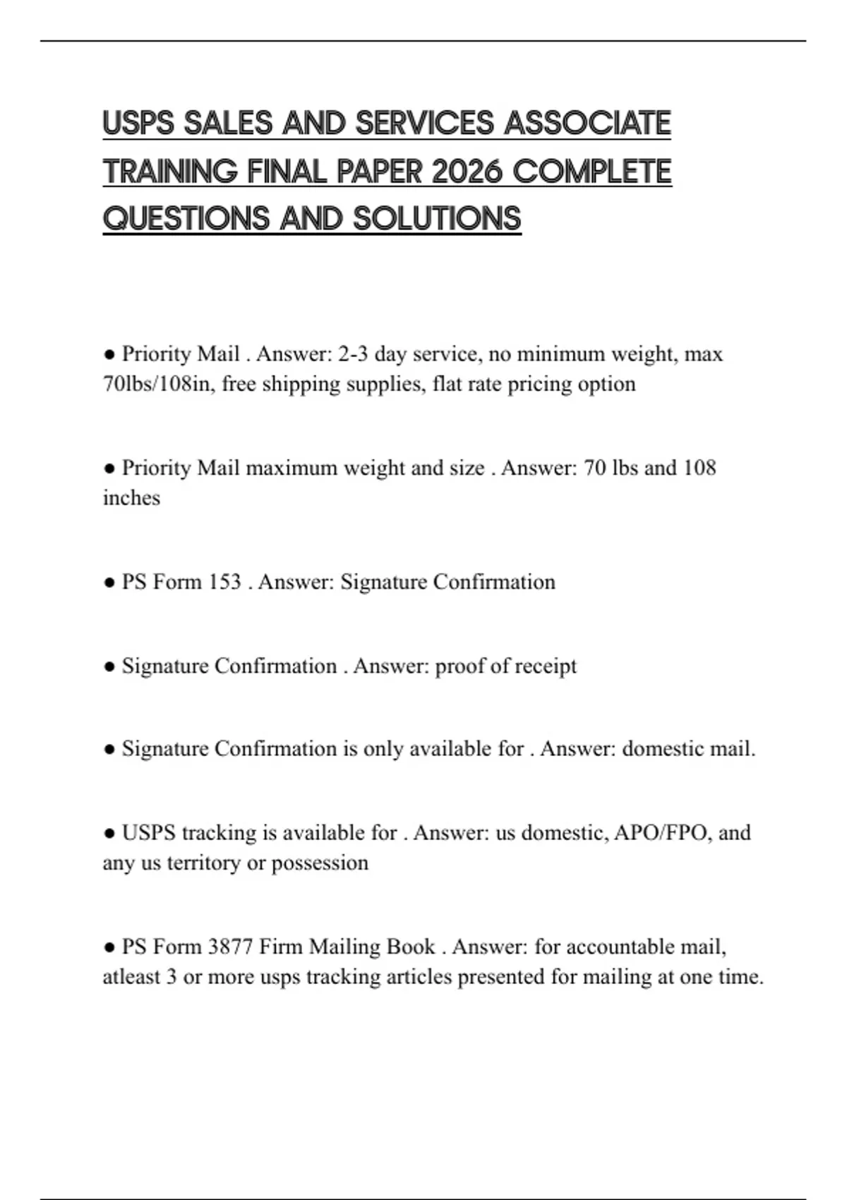 USPS SALES AND SERVICES ASSOCIATE TRAINING FINAL PAPER 2026 COMPLETE QUESTIONS AND SOLUTIONS