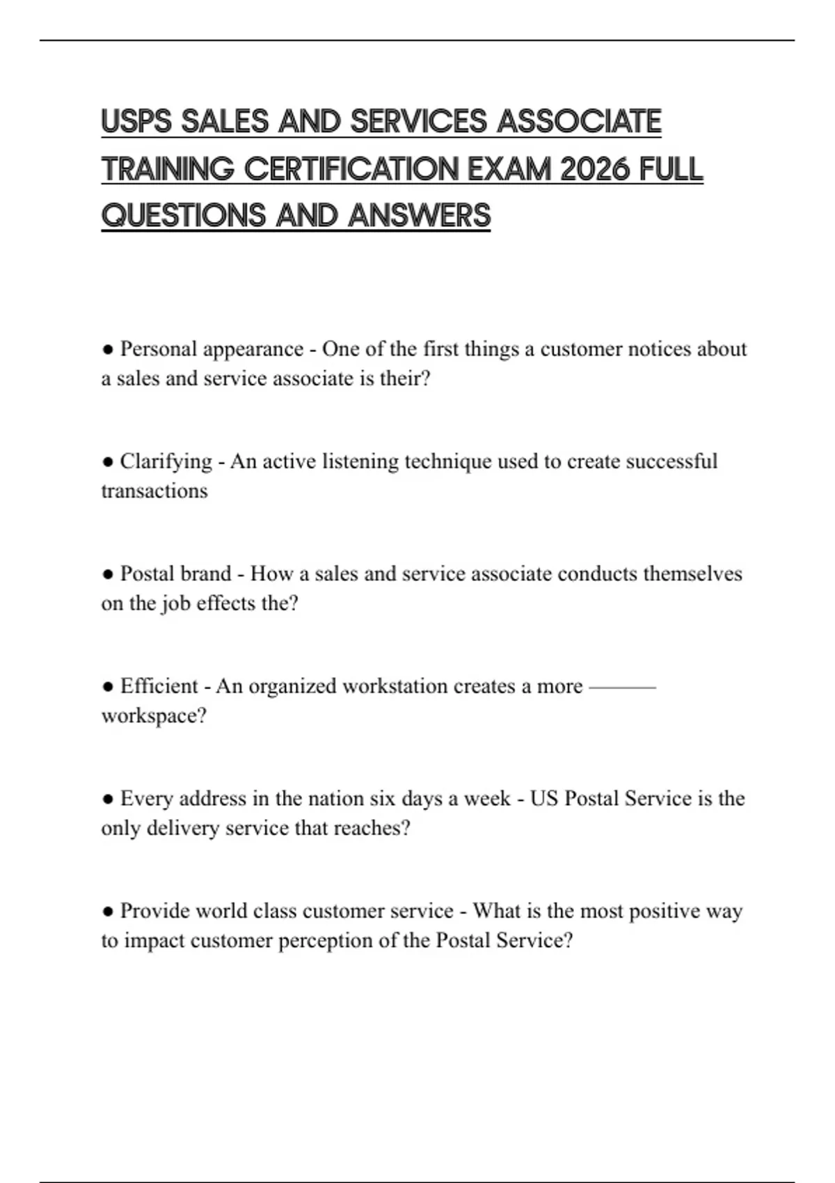 ● Postal brand - How a sales and service associate conducts themselves