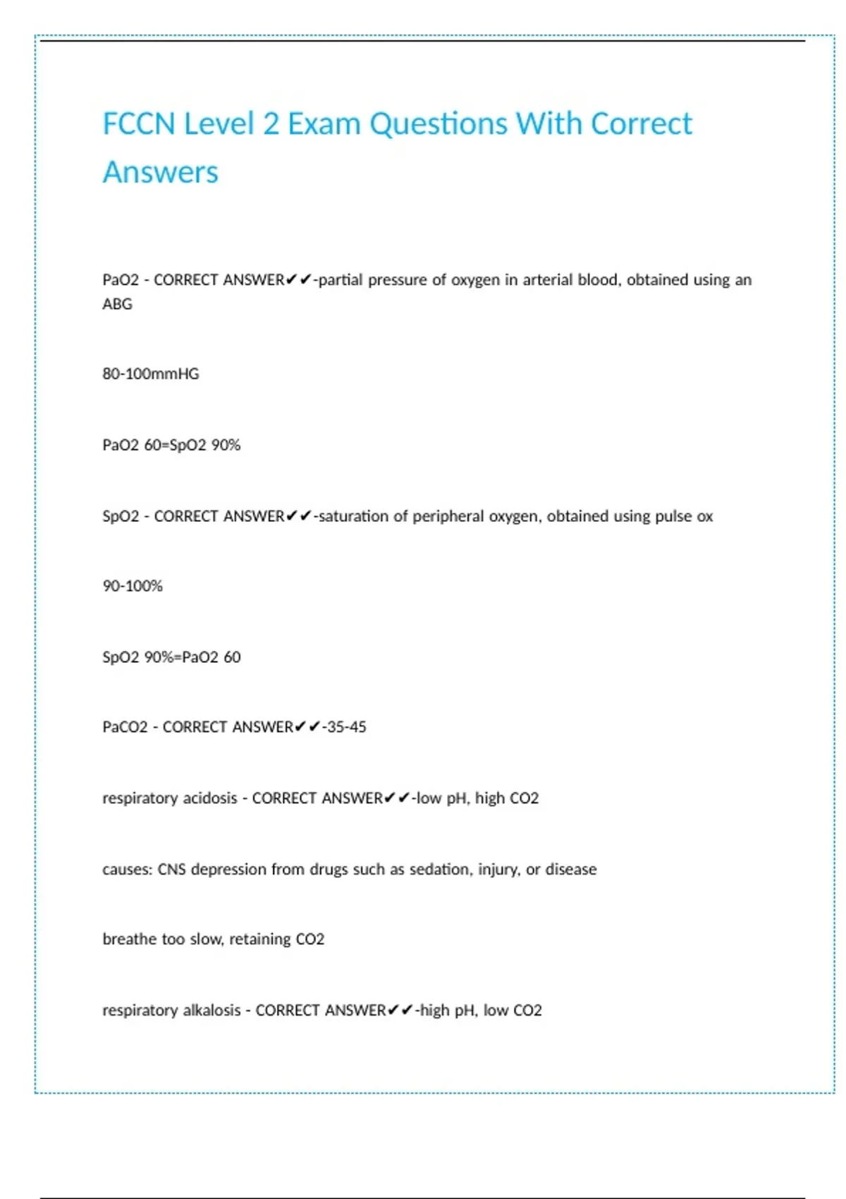 FCCN Level 2 Exam Questions With Correct Answers