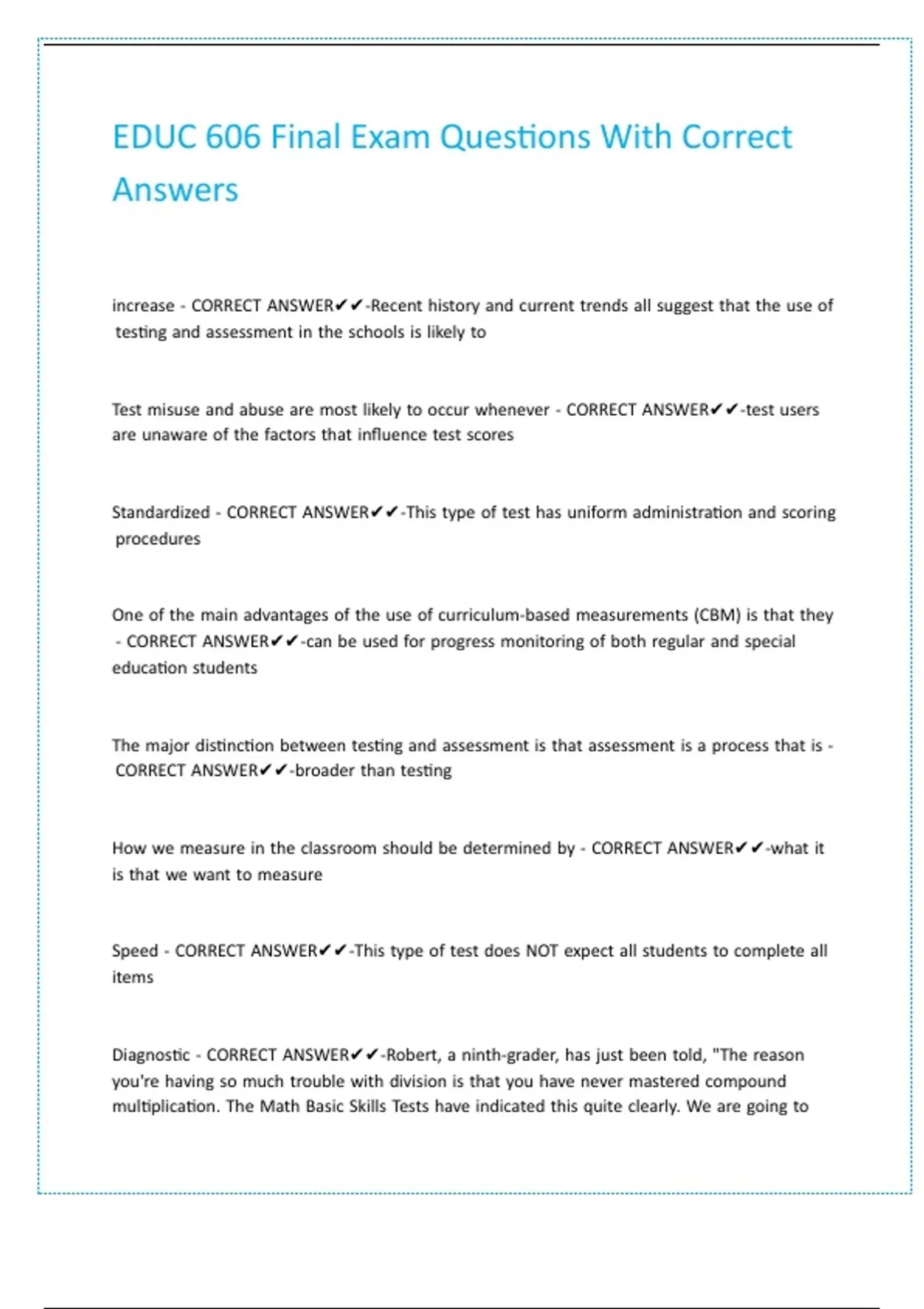 Standardized |- |CORRECT |ANSWER✔✔-This |type |of |test |has |uniform |administration |and |scoring
