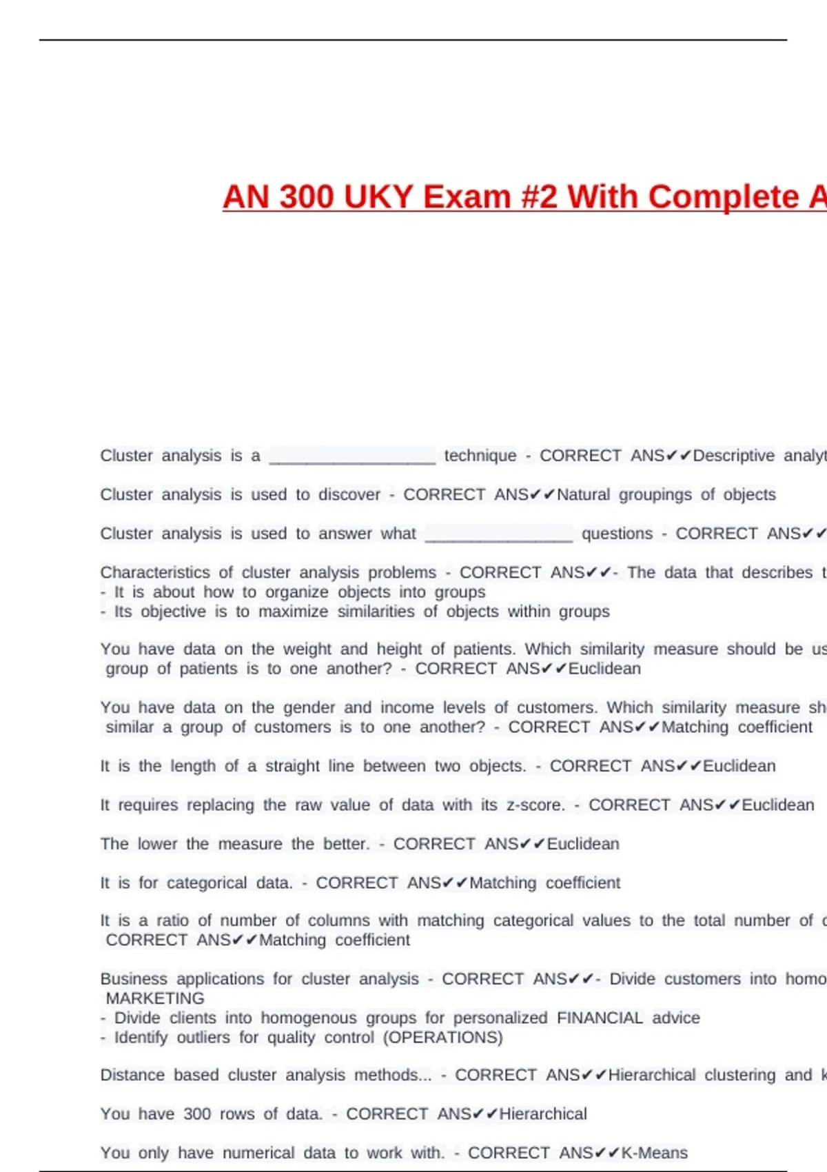Cluster canalysis cis cused cto canswer cwhat c________________ cquestions c- cCORRECT cANS✔✔