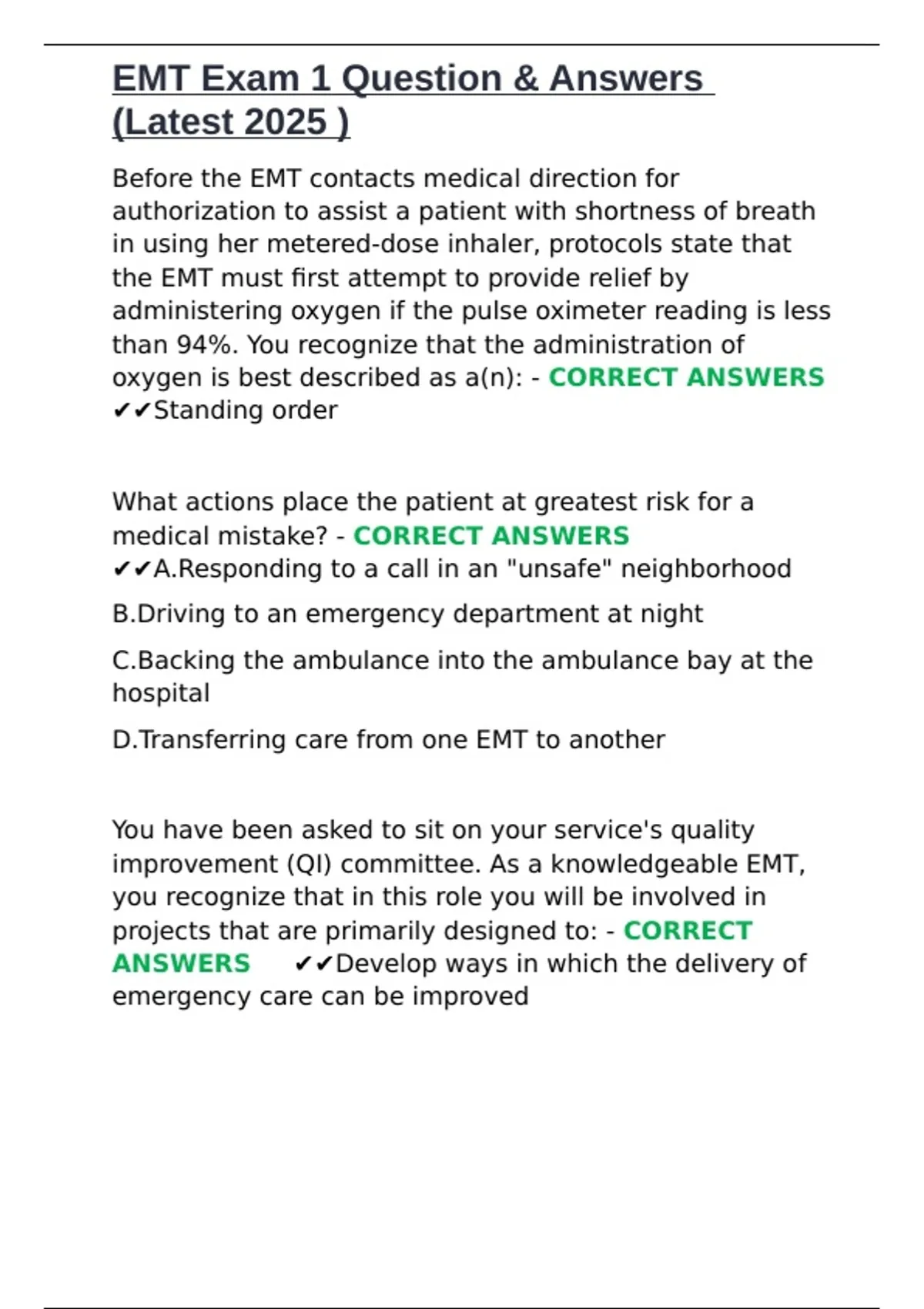 EMT Exam 1 Question & Answers (Latest 2025 ).docx