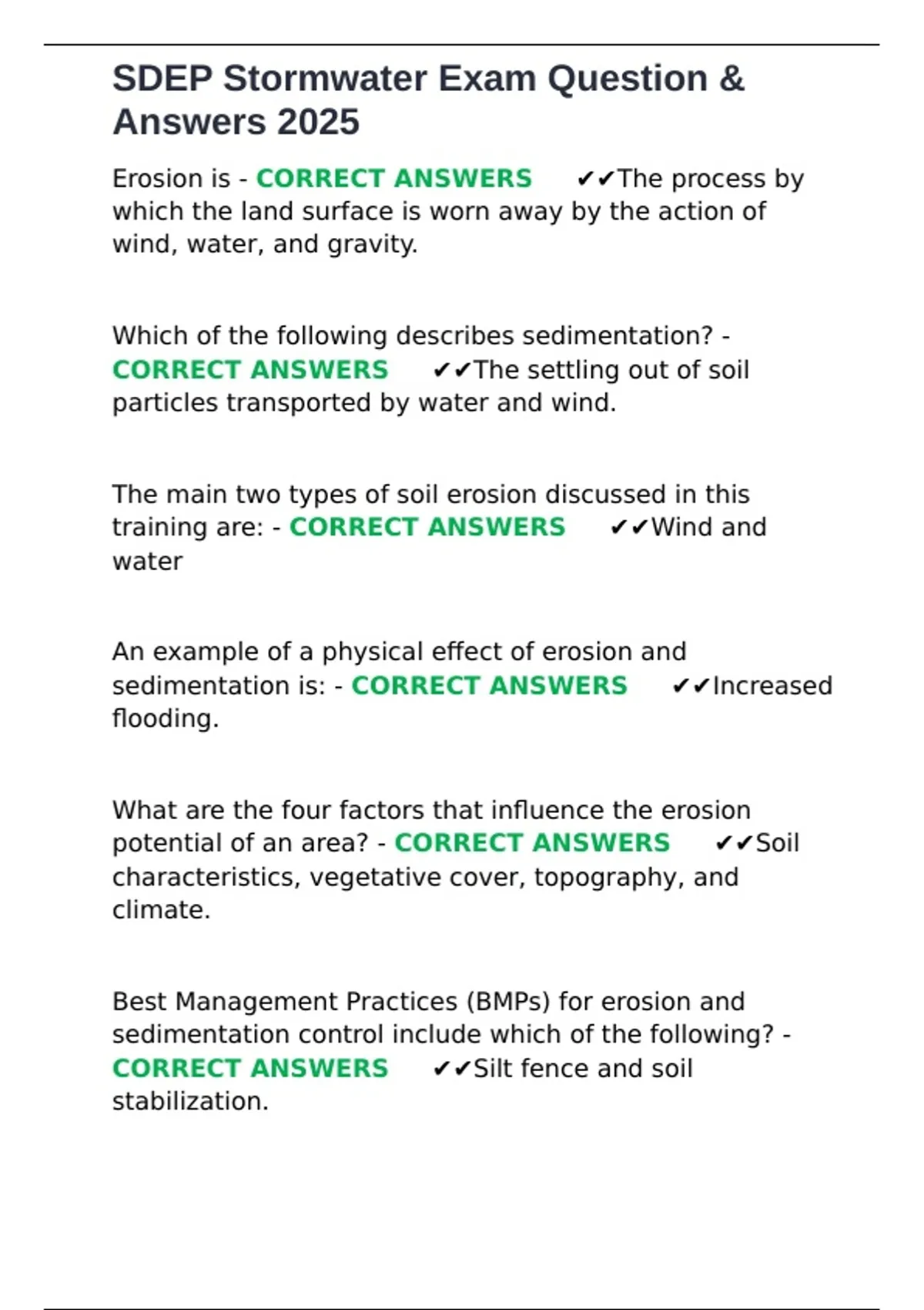 SDEP Stormwater Exam Question & Answers 2025.docx