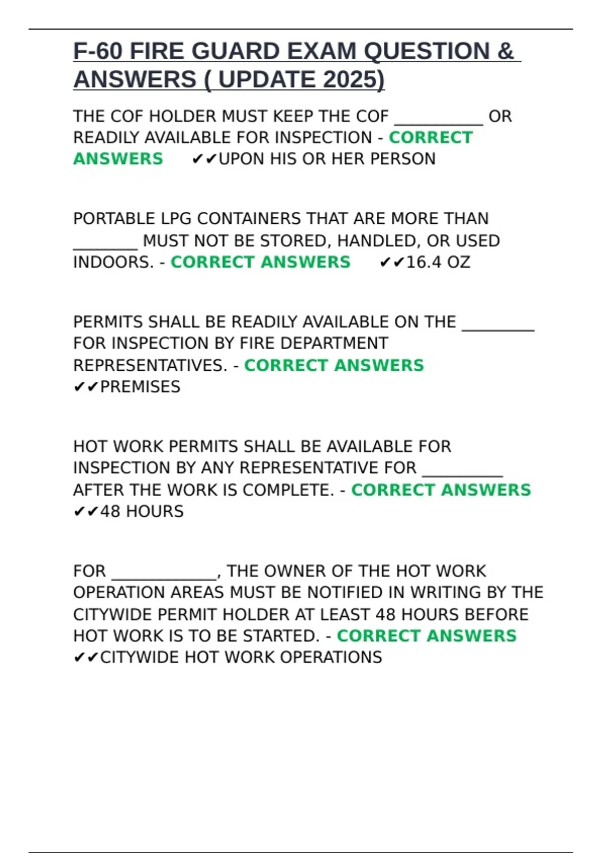 COMPLETION OF HOT WORK FOR __________. - CORRECT