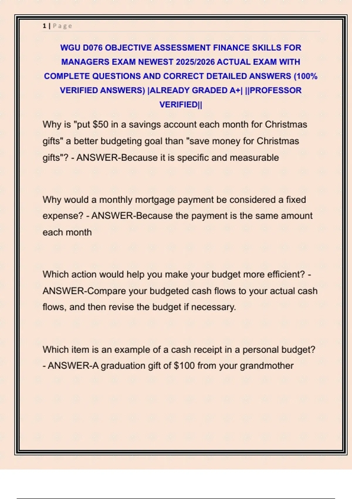 WGU D076 OBJECTIVE ASSESSMENT FINANCE SKILLS FOR