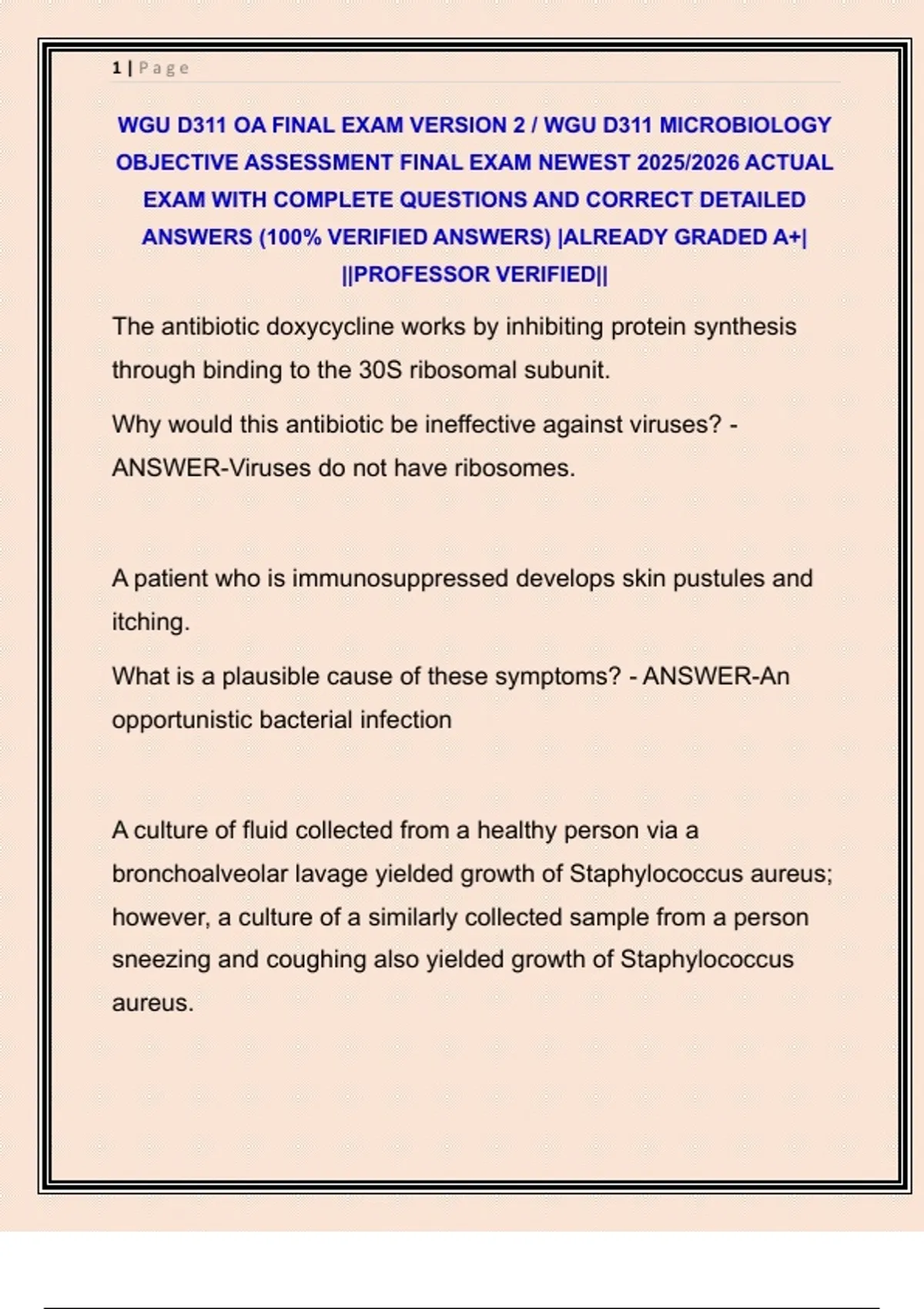 WGU D311 OA FINAL EXAM VERSION 2 / WGU D311 MICROBIOLOGY