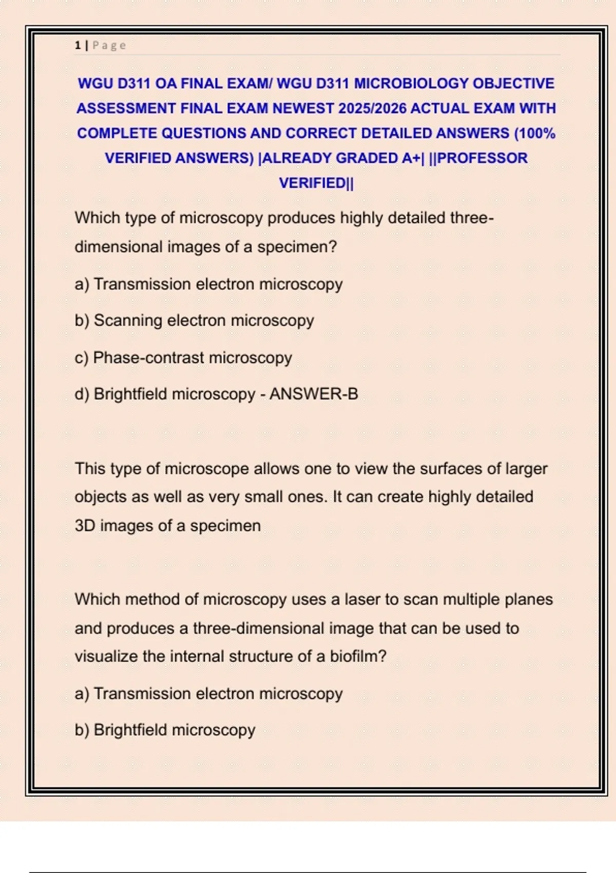 WGU D311 OA FINAL EXAM/ WGU D311 MICROBIOLOGY OBJECTIVE ASSESSMENT FINAL EXAM NEWEST 2025/2026 ACTUAL EXAM WITH COMPLETE QUESTIONS AND CORRECT DETAILED ANSWERS (100% VERIFIED ANSWERS) |ALREADY GRADED A+| ||PROFESSOR VERIFIED||