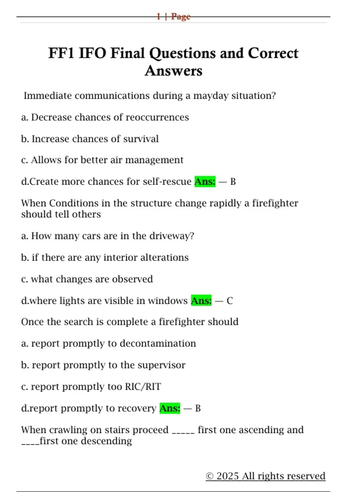 FF1 IFO Final Questions and Correct Answers