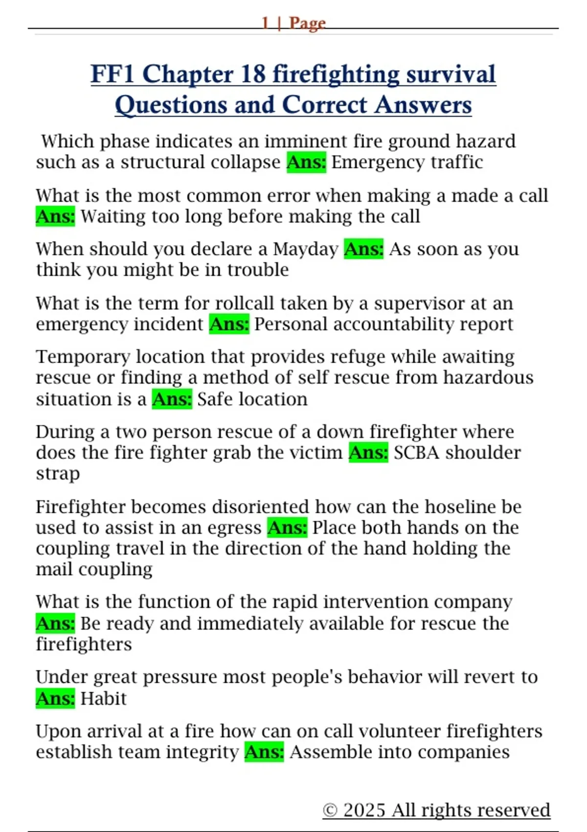 FF1 Chapter 18 firefighting survival