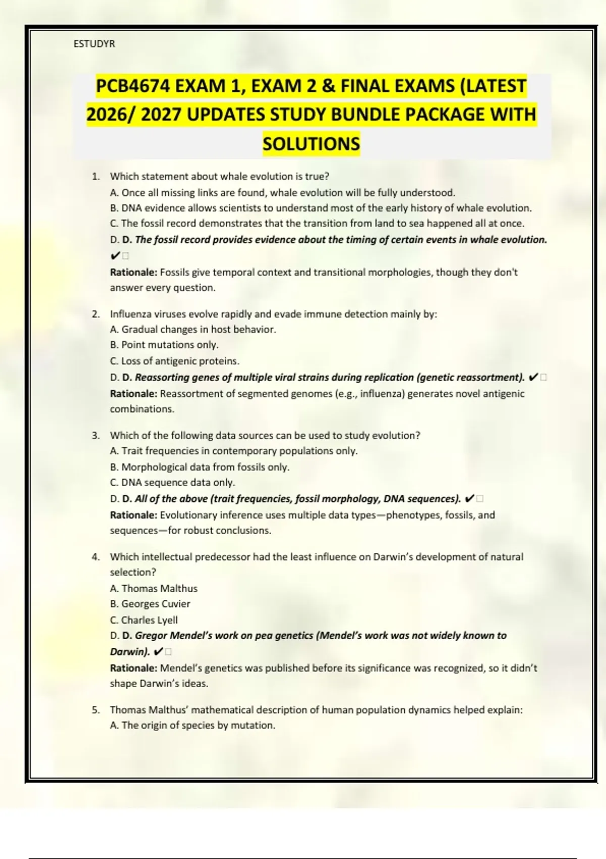 PCB4674 EXAM 1, EXAM 2 & FINAL EXAMS (LATEST