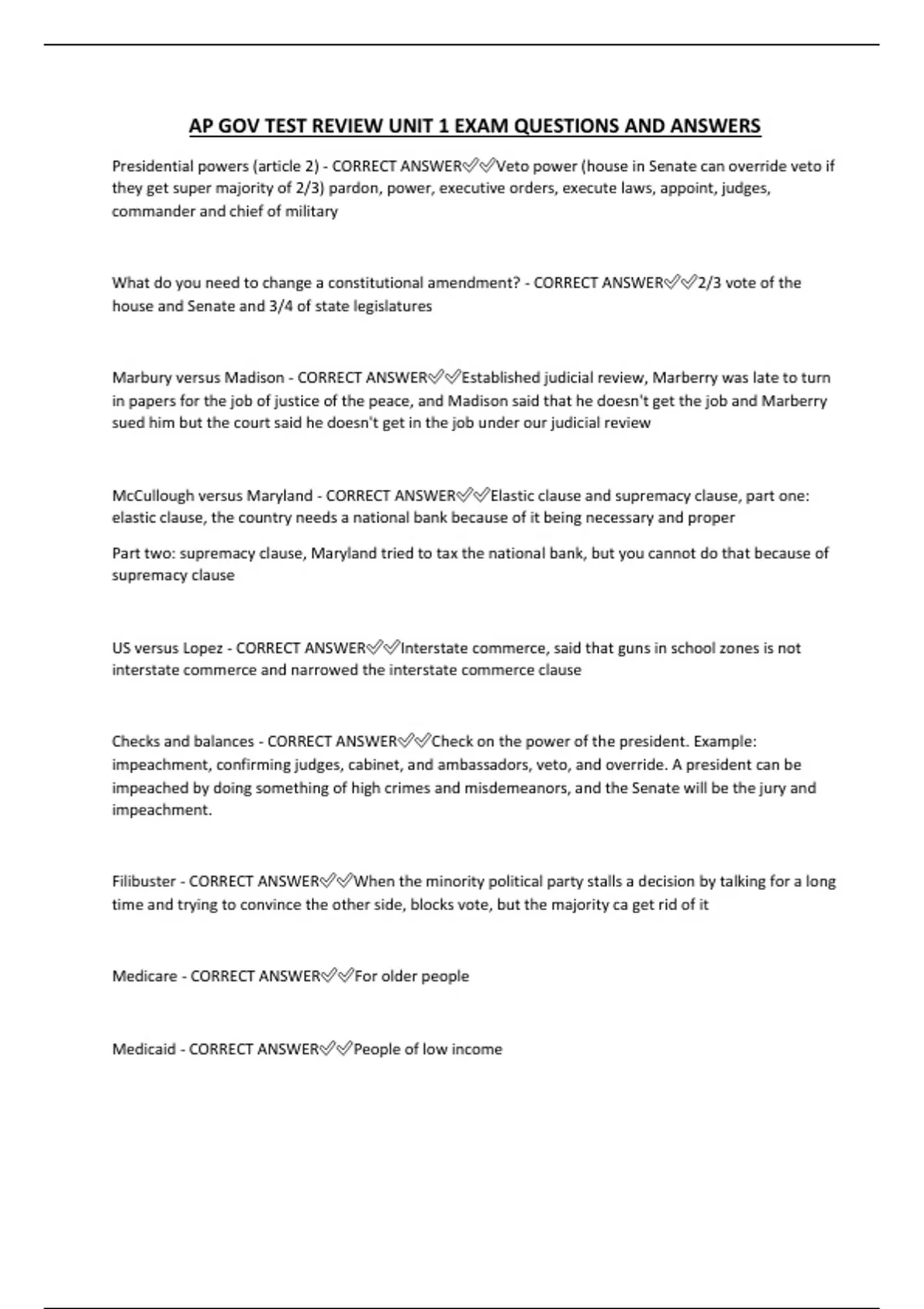 AP GOV TEST REVIEW UNIT 1 EXAM QUESTIONS AND ANSWERS
