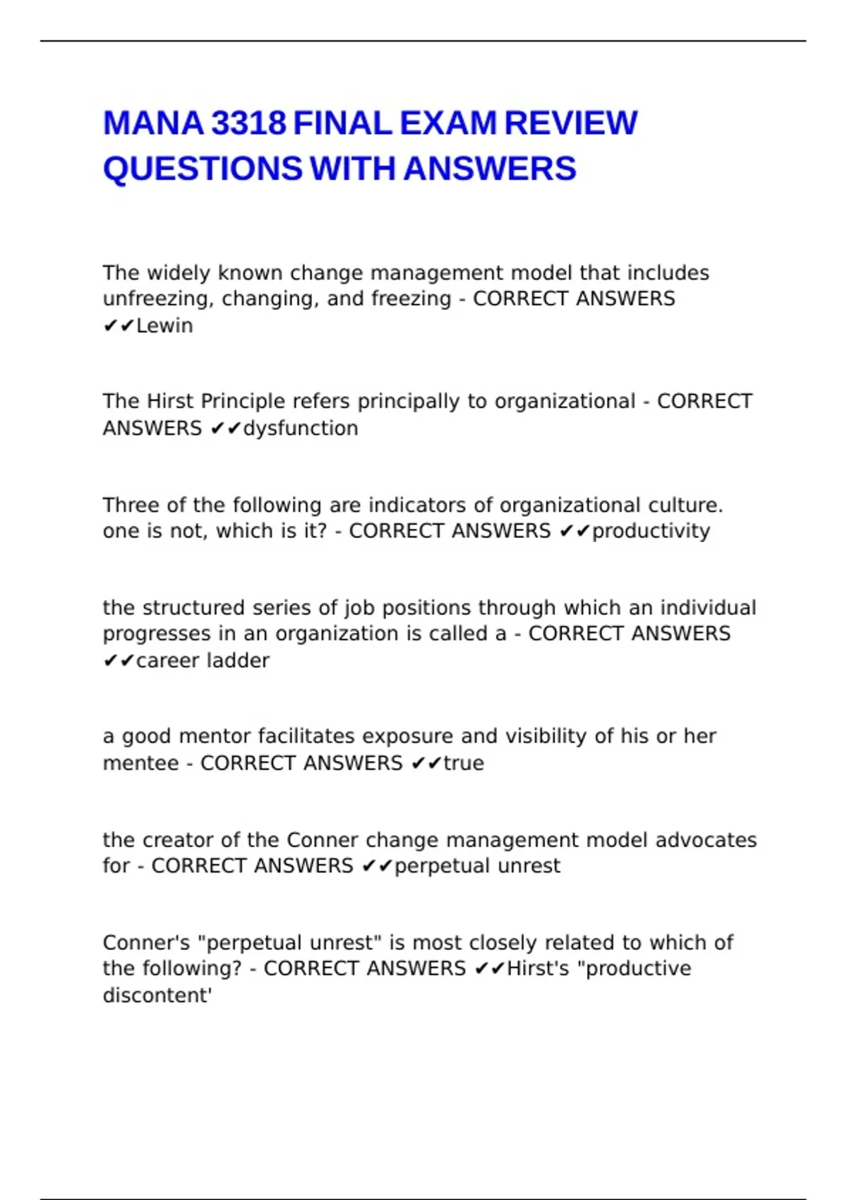 for - CORRECT ANSWERS ✔✔perpetual unrest