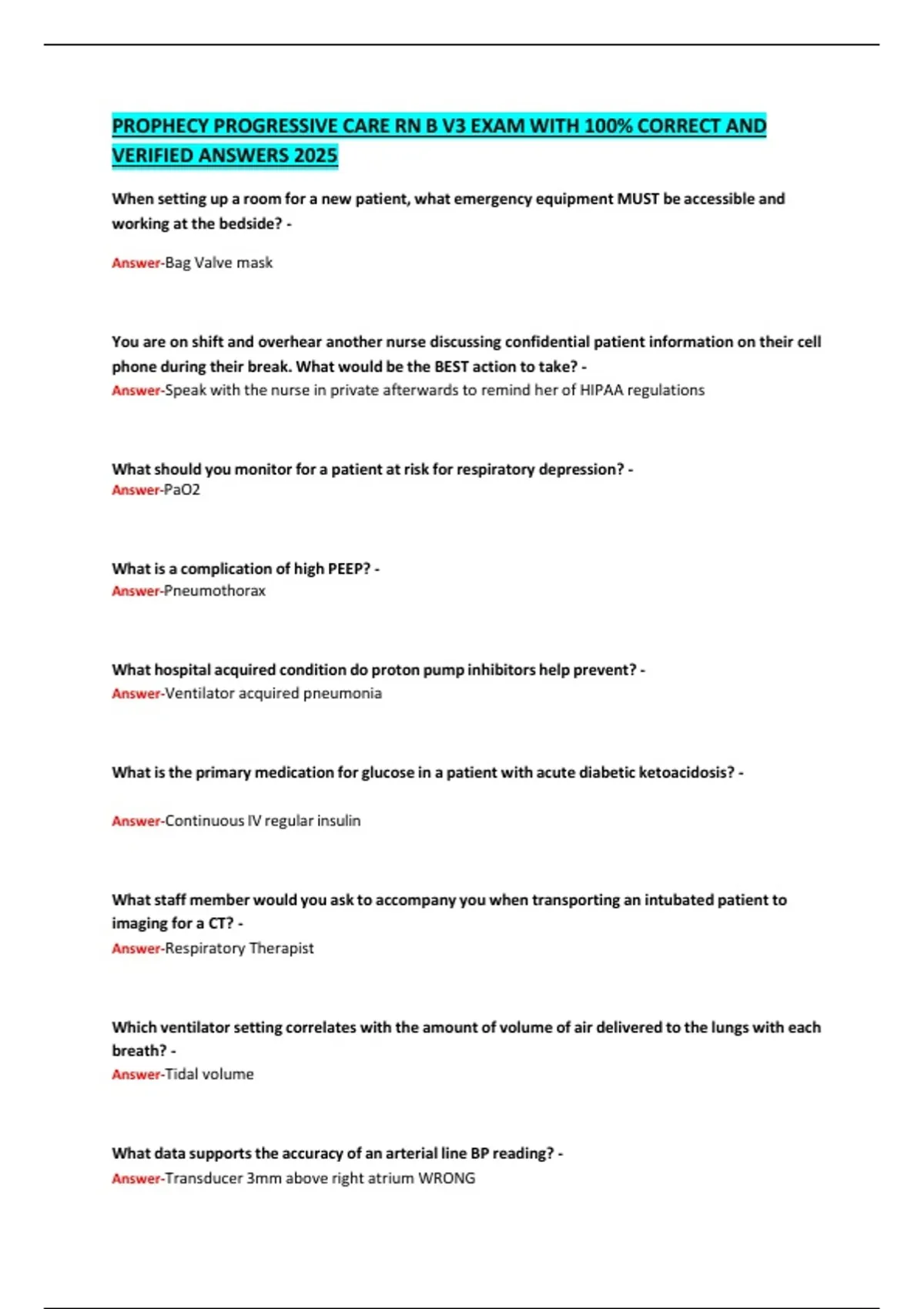 PROPHECY PROGRESSIVE CARE RN B V3 EXAM WITH 100% CORRECT AND VERIFIED ANSWERS 2025