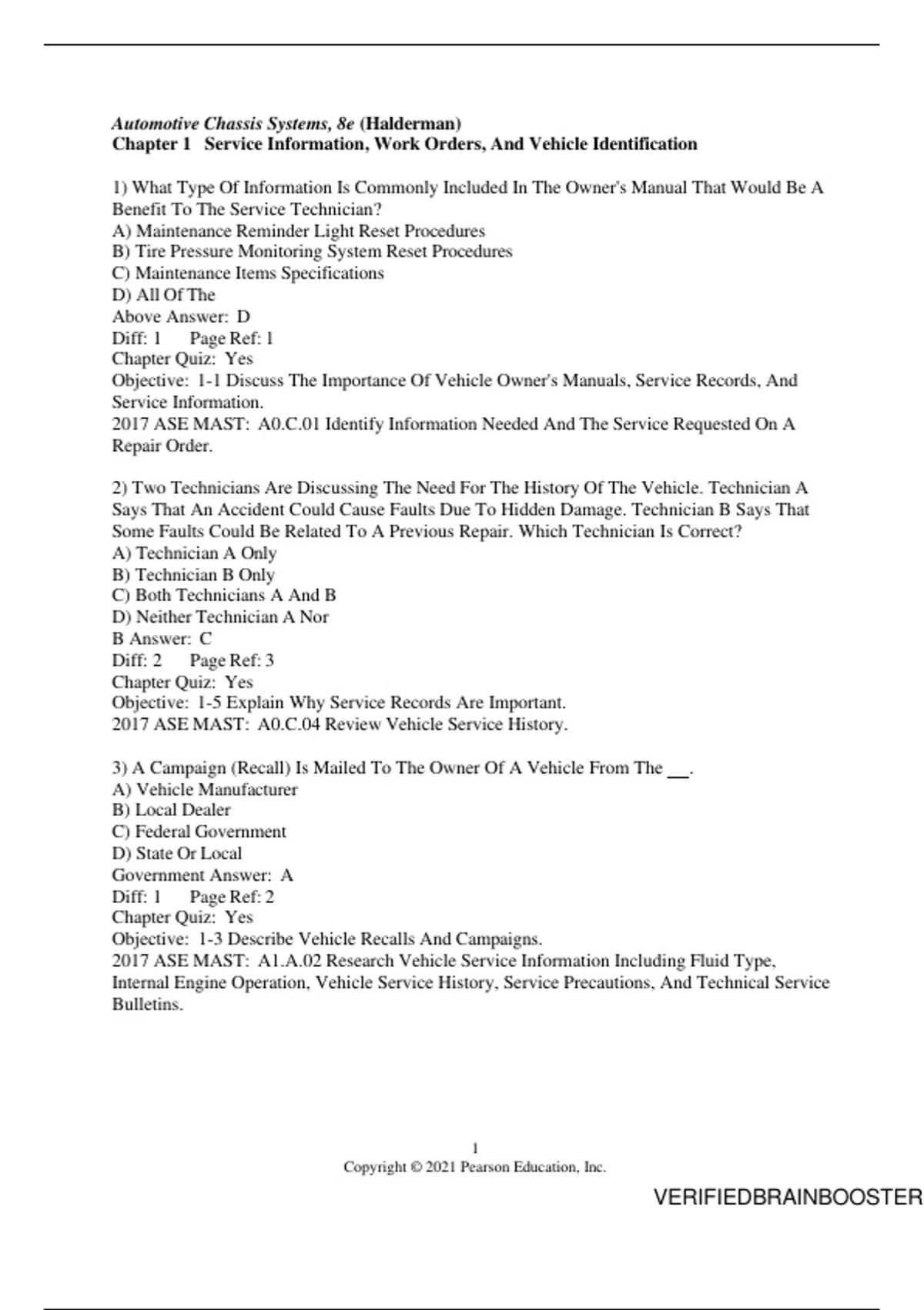 2017 ASE MAST: A0.C.04 Review Vehicle Service History.