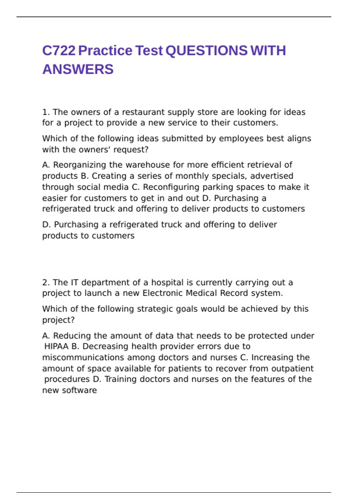 easier for customers to get in and out D. Purchasing a