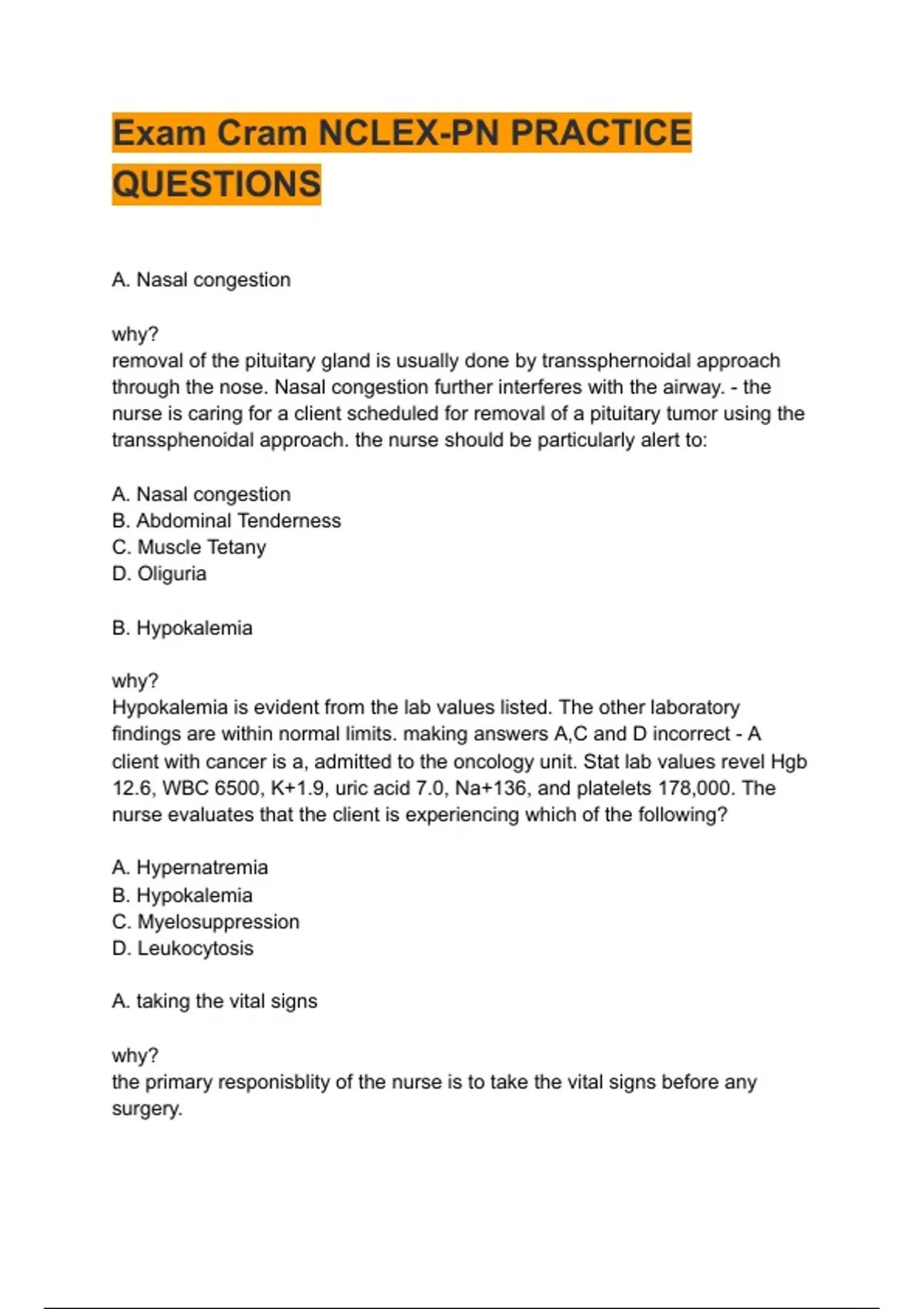nurse is caring for a client scheduled for removal of a pituitary tumor using the