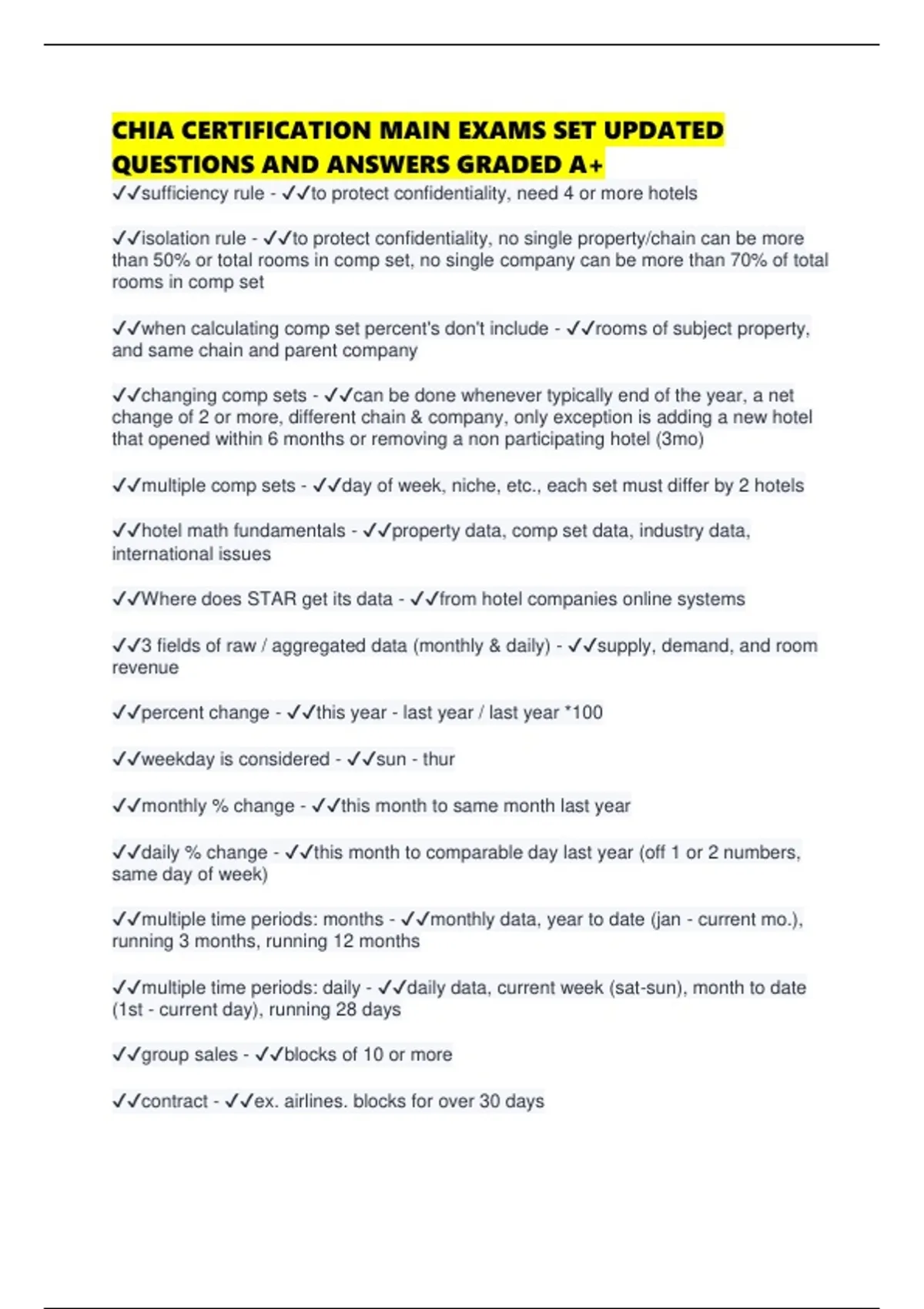 CHIA CERTIFICATION MAIN EXAMS SET UPDATED QUESTIONS AND ANSWERS GRADED A+