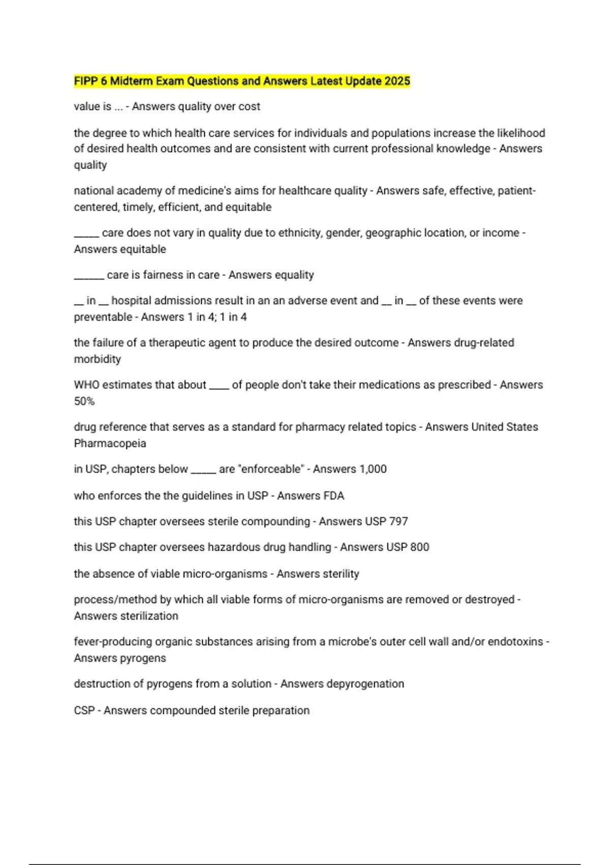 CSP - Answers compounded sterile preparation