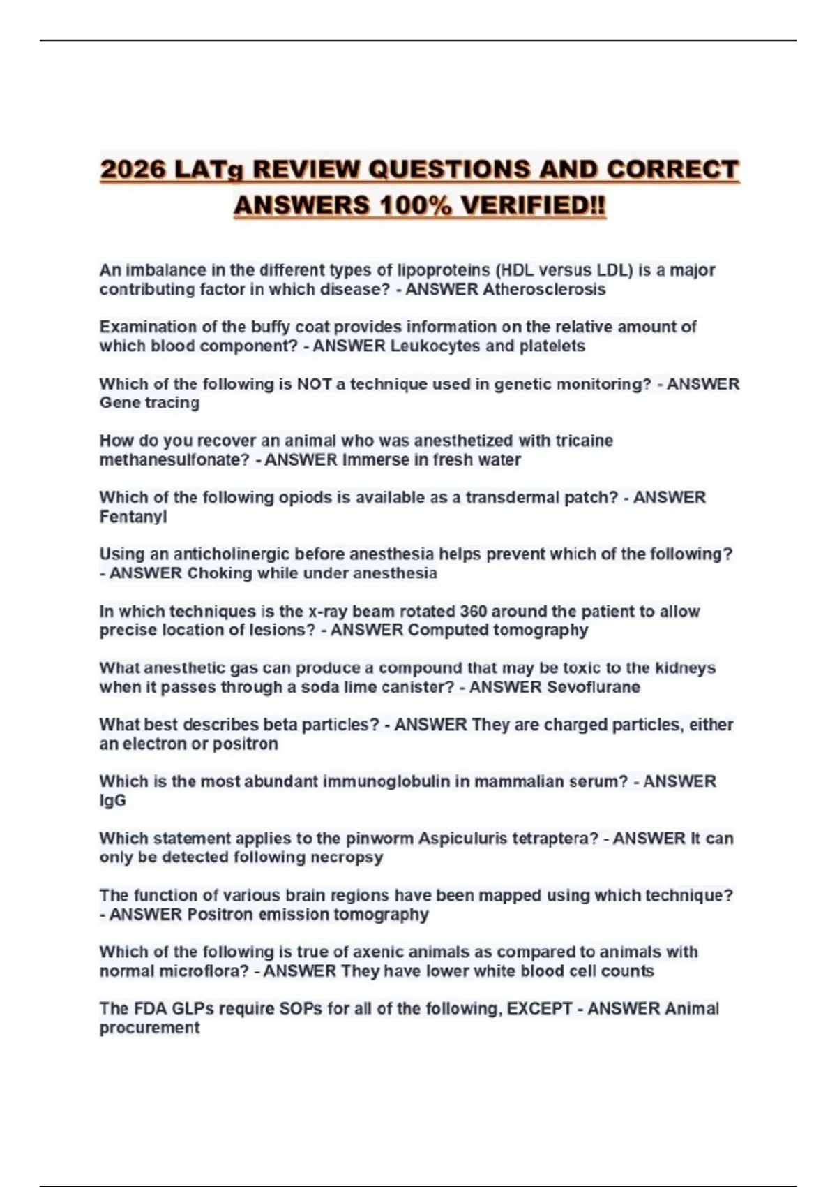 2026 LATg REVIEW QUESTIONS AND CORRECT ANSWERS 100% VERIFIED!!...