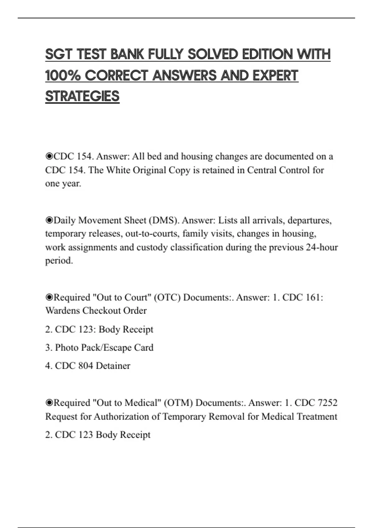 ◉Required "Out to Court" (OTC) Documents:. Answer: 1. CDC 161: