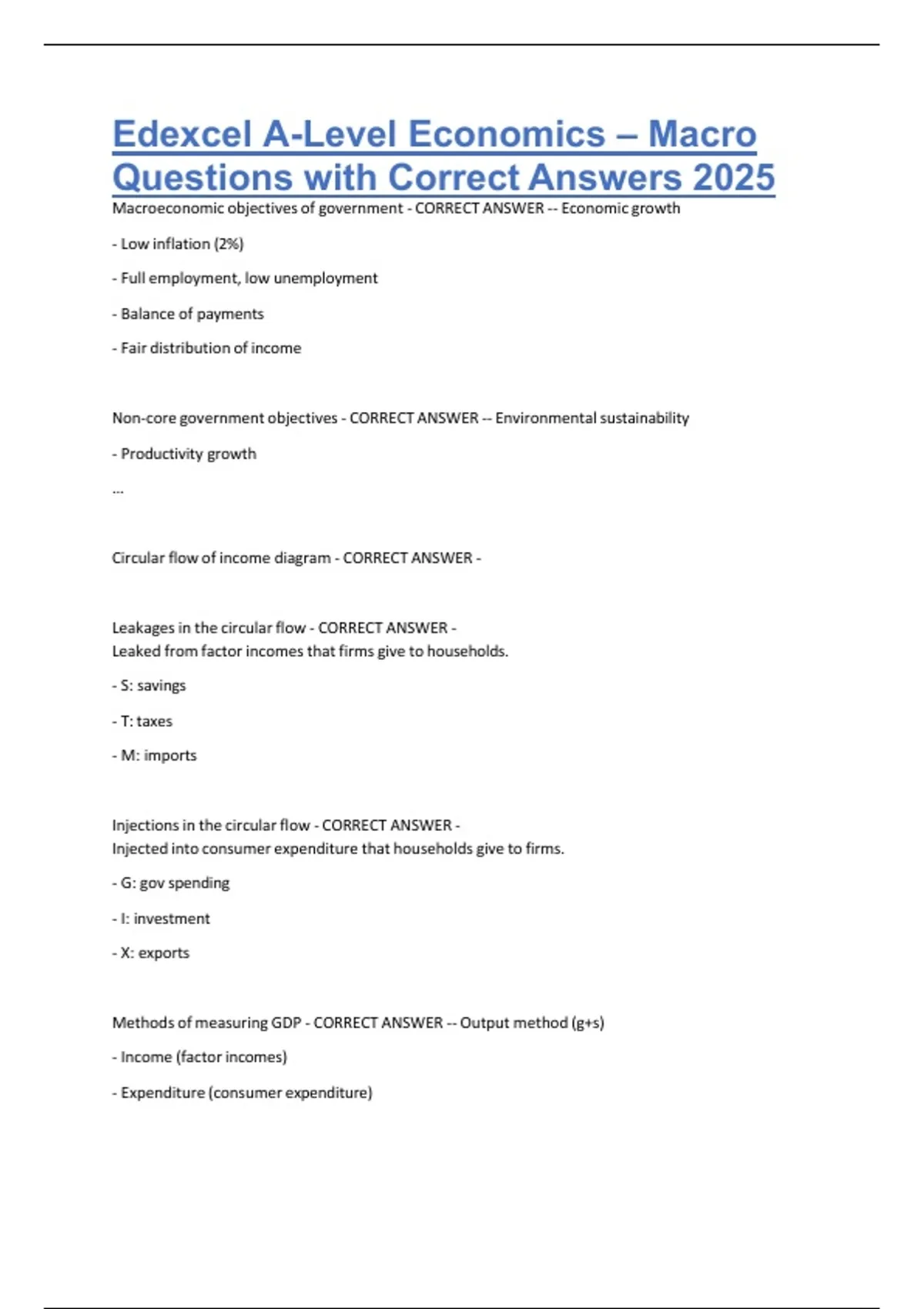 Edexcel A-Level Economics – Macro Questions with Correct Answers 2025