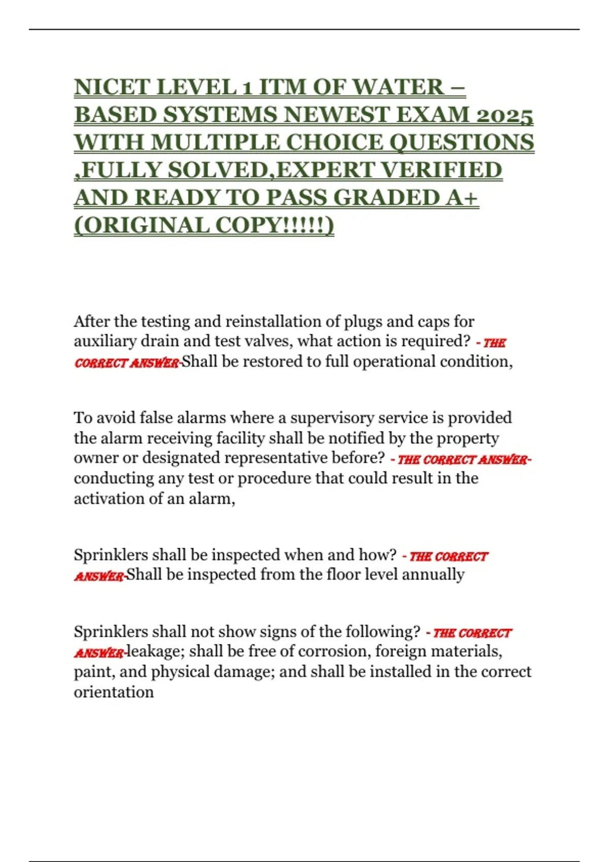 CORRECT ANSWER-Every type of sprinkler,