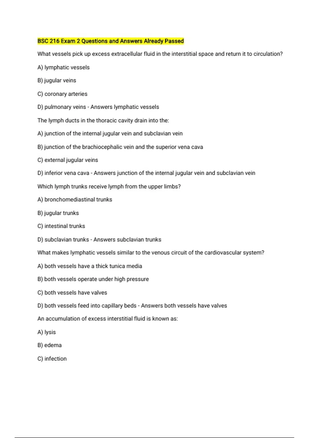 D) subclavian trunks - Answers subclavian trunks