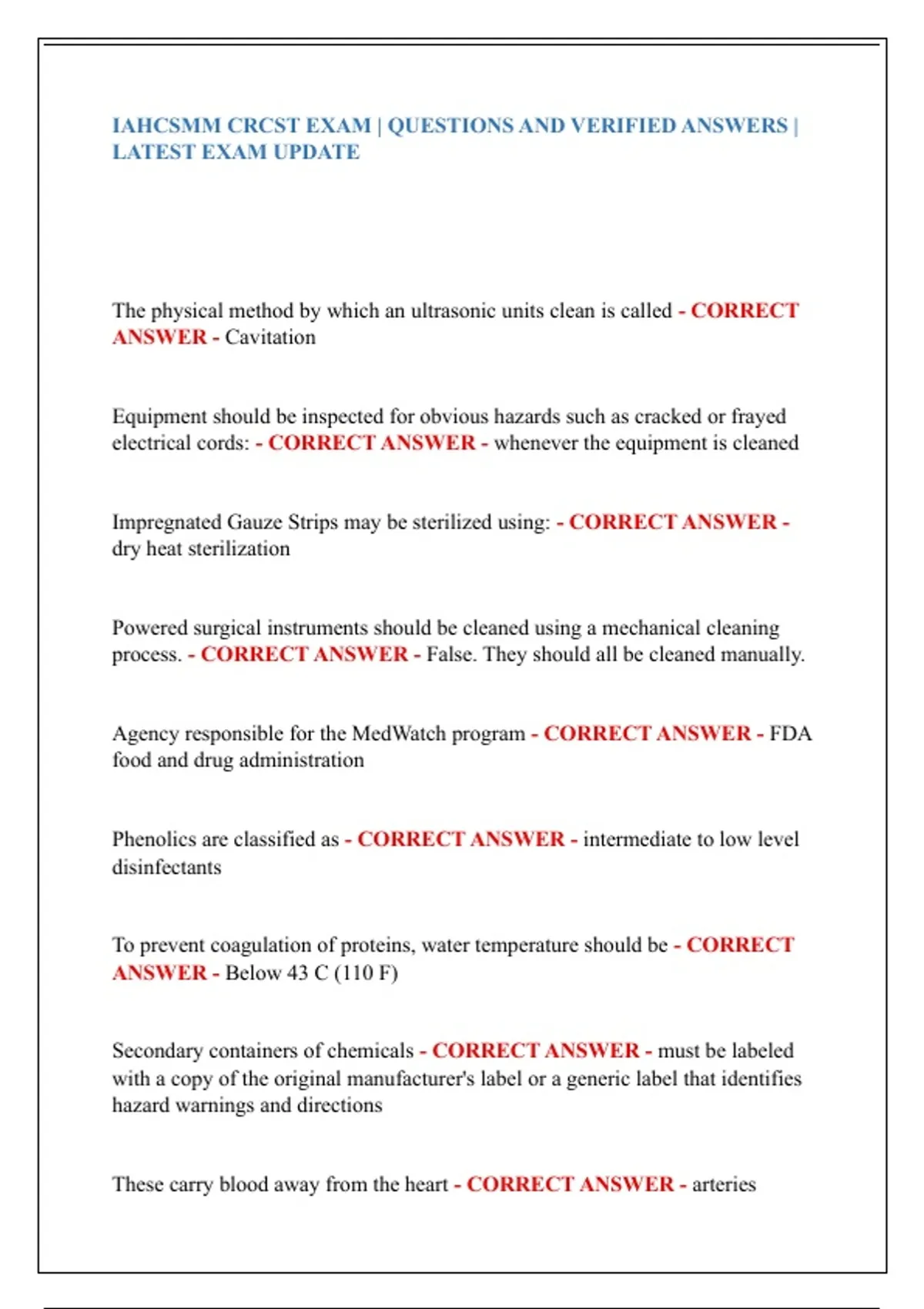 IAHCSMM CRCST EXAM | QUESTIONS AND VERIFIED ANSWERS |