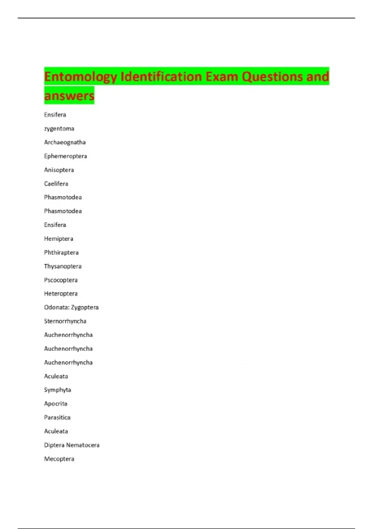 Entomology Identification Exam Questions and answers Ensifera zygentoma Archaeognatha Ephemeroptera Anisoptera Caelifera Phasmotodea Phasmotodea Ensifera Hemiptera