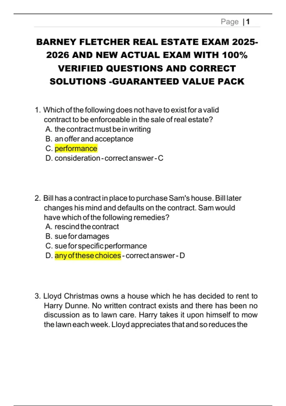 BARNEY FLETCHER REAL ESTATE EXAM 2025-