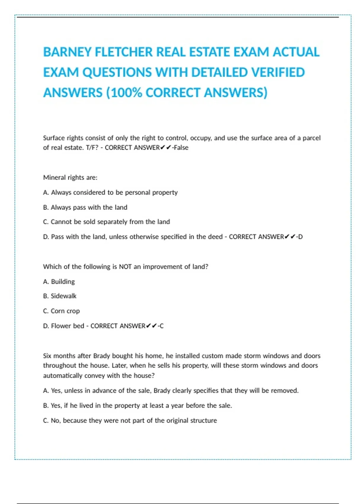 BARNEY FLETCHER REAL ESTATE EXAM ACTUAL