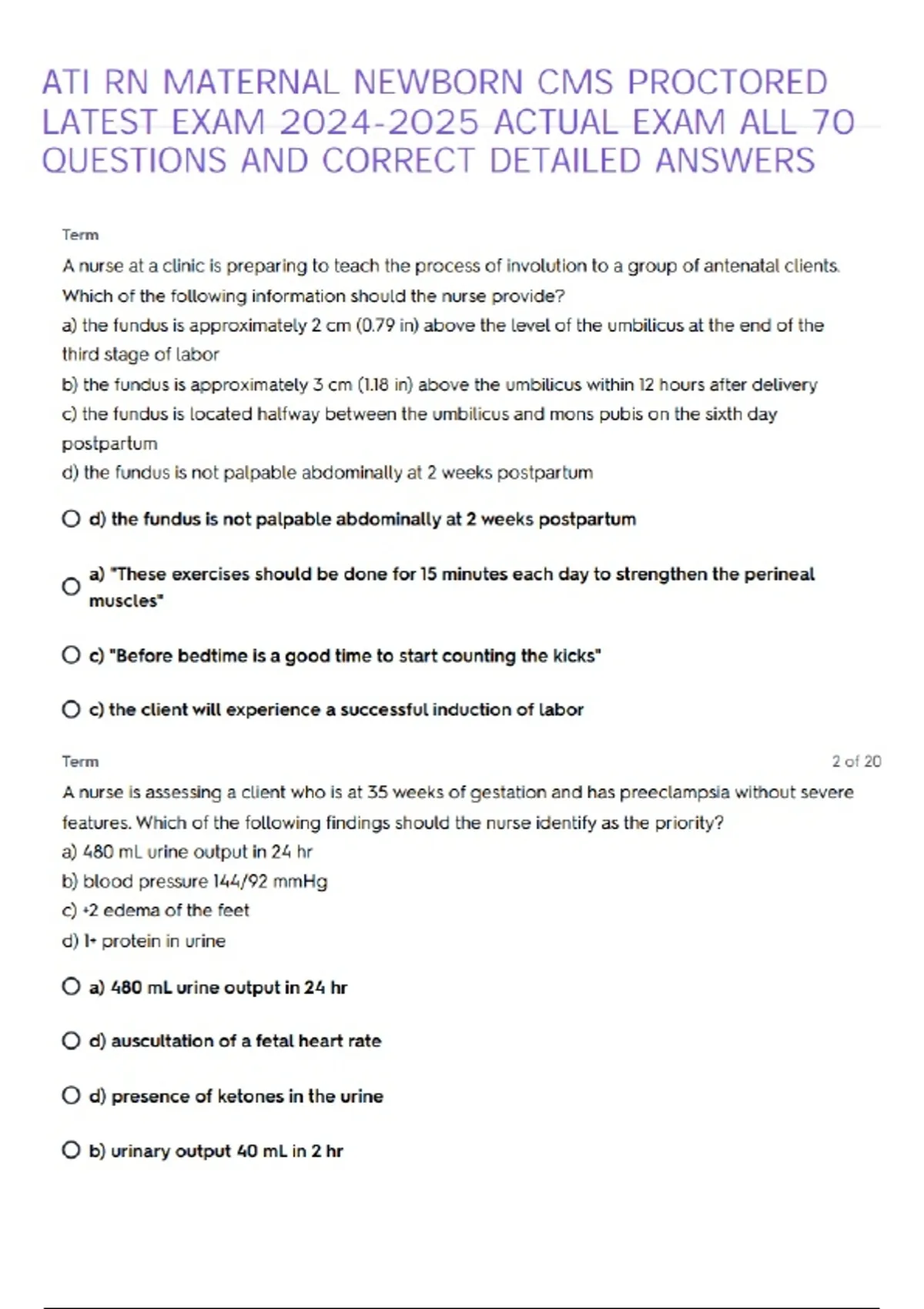 ATI RN MATERNAL NEWBORN CMS PROCTORED LATEST EXAM ACTUAL EXAM ALL 70 QUESTIONS AND CORRECT DETAILED ANSWERS _ Quizlet (1).pdf