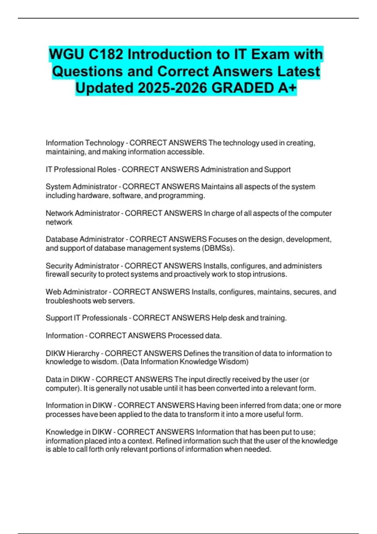 Information in DIKW - CORRECT ANSWERS Having been inferred from data; one or more