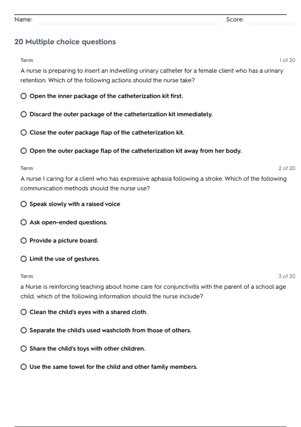 A nurse I caring for a client who has expressive aphasia following a stroke. Which of the following