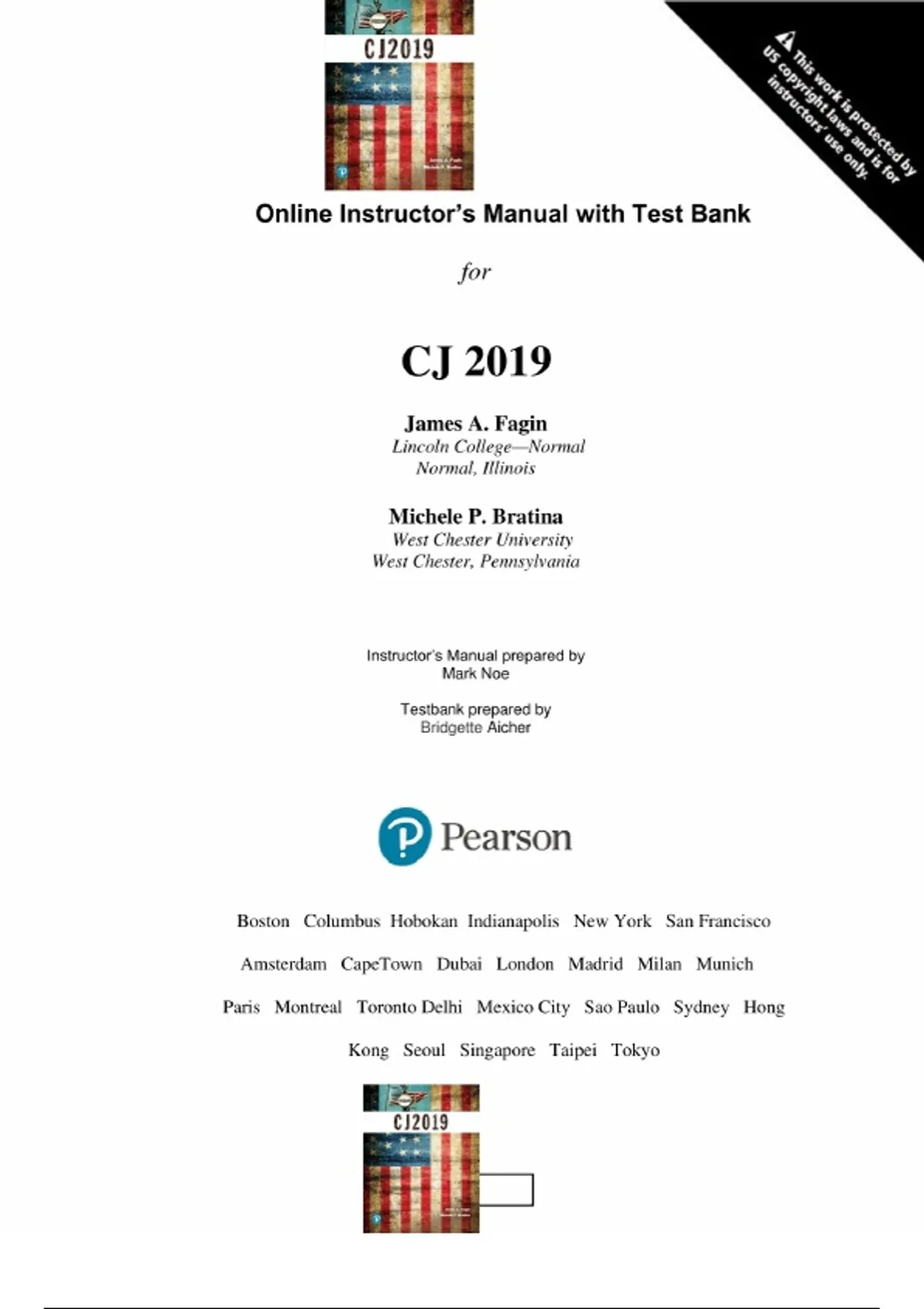 Test Bank and Solutions Manual for CJ 2019 1st Edition by James A. Fagin.| All Chapters 1-14 included.|Complete solutions Manual with Questions and answers with rationale, Graded A+.