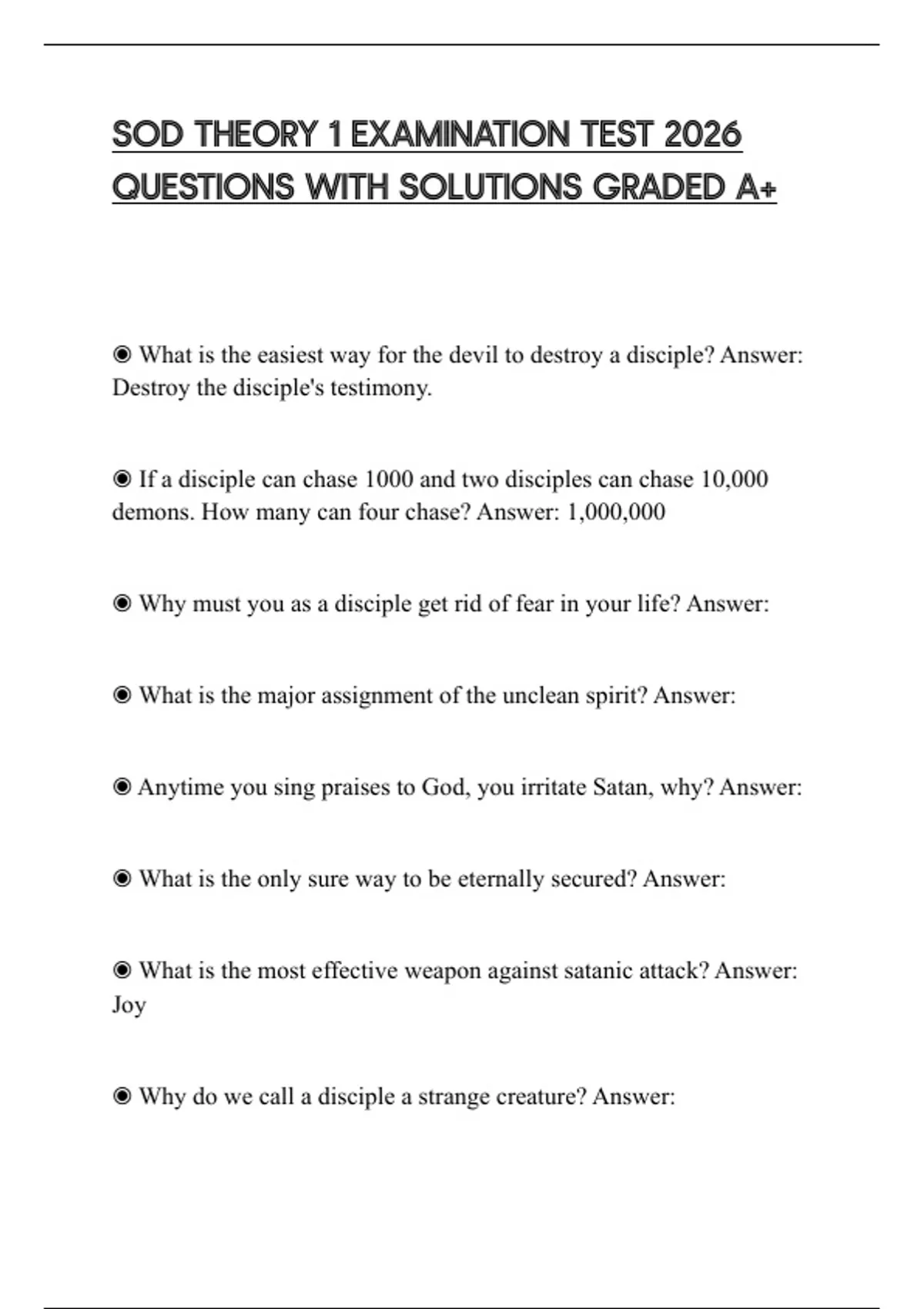 ◉ What is the easiest way for the devil to destroy a disciple? Answer: