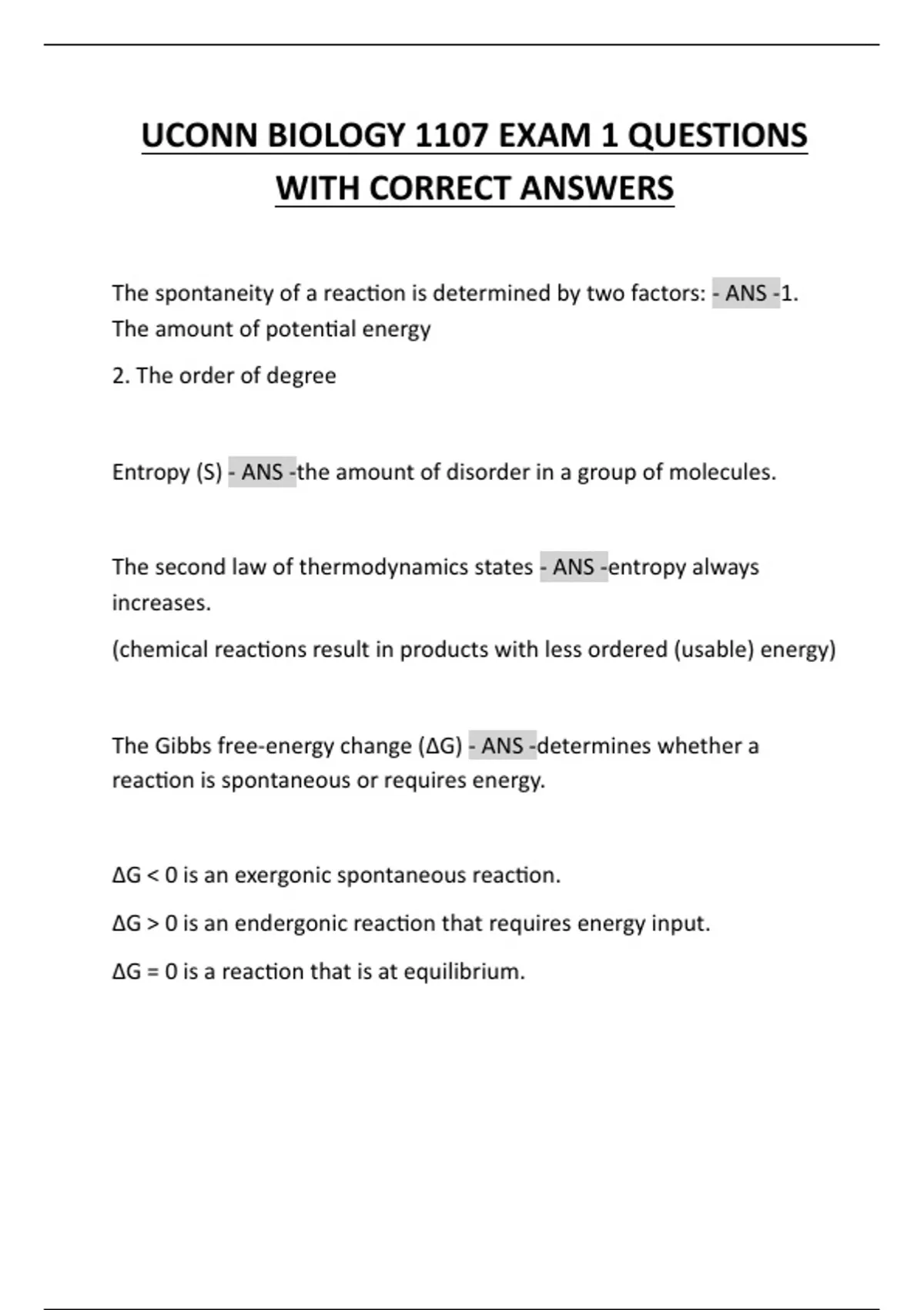 UCONN BIOLOGY 1107 EXAM 1 QUESTIONS WITH CORRECT ANSWERS